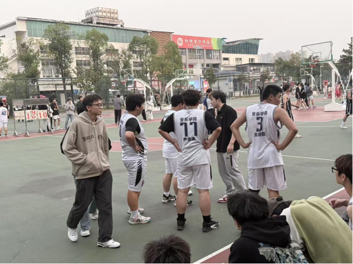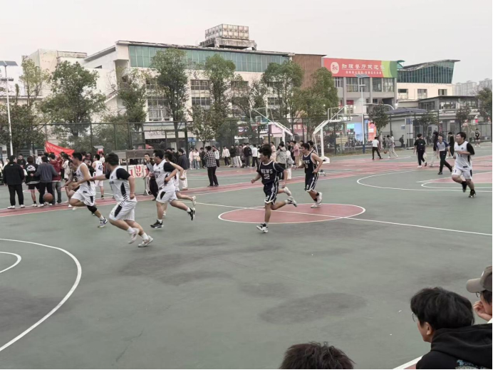 2024年10月29日下午,一场激烈的篮球对决在我院与新闻学院之间展开,双方队员斗志昂扬,在球场上尽情挥洒汗水。
