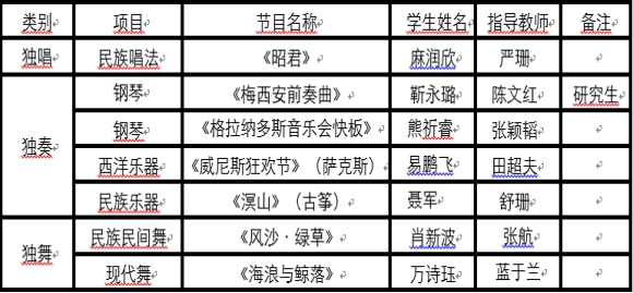 由湖南省教育厅主办的湖南省第十一届本科院校音乐舞蹈专业学生独唱、独奏、独舞比赛在湖南工业大学举行。我校sunbet申搏学生表现优异,一举获得7项一等奖,创造学校参加此类比赛以来最佳成绩。获得全省一等奖的项目分别是: