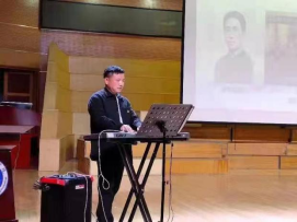 3月22日下午,黄皓华带领红歌合唱团以及器乐组学生为学生党支部、研究生党支部、第45、46期入党积极分子以及1902、1904班全体同学讲授音乐党课“百年党史中的音乐绝响”一幕幕党史画卷,伴着音乐徐徐展开,也让大家在音乐中,与历史对话,再度叩问初心,审视使命和担当。黄皓华书记用音乐艺术的形式展现了具有别样风采的音乐党课,激励在场的同学们不忘初心、牢记使命。