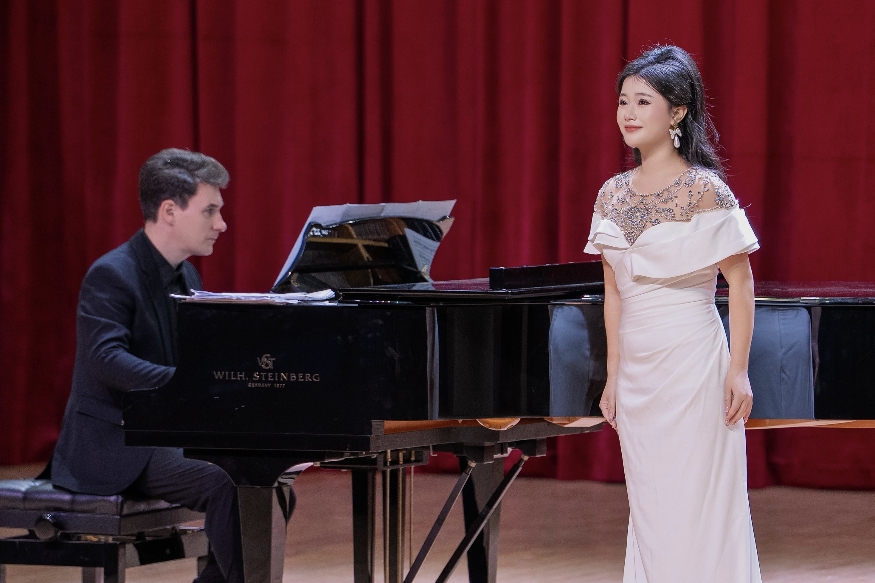 2025年11月21日晚,董箐声乐表演艺术硕士学位音乐会于学院音乐厅顺利举办。本次音乐会由王白菊教授指导,伊利亚•契什科夫担任艺术指导,2024级研究生瞿晓杨主持,特邀2023级本科生郭子源出演,sunbet申搏部分师生到场观看。