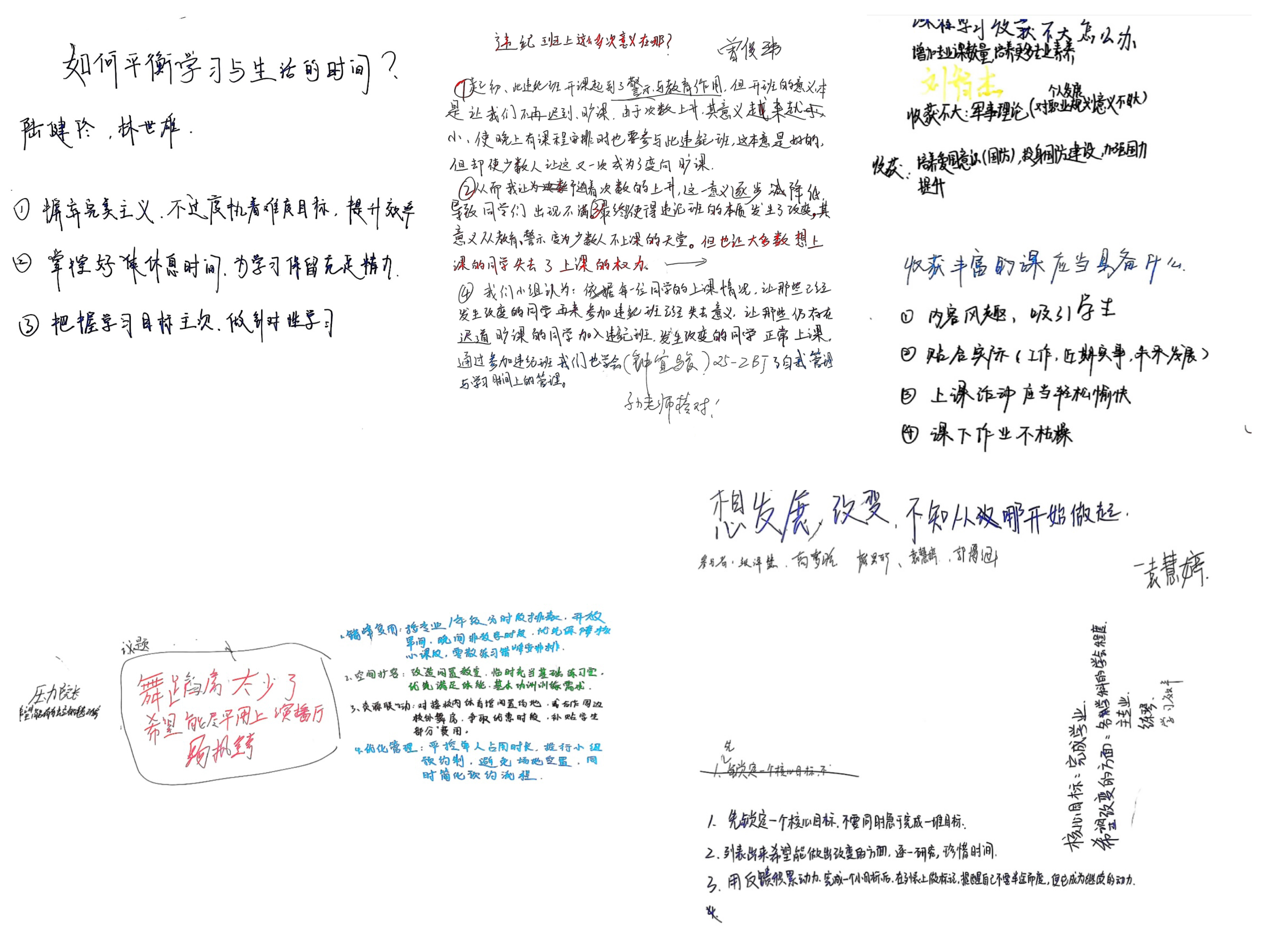 针对学生普遍关心的专业学习、时间管理等现实问题,蔡书记鼓励同学们将困惑与疑问自由书写在准备好的白纸上。这一环节使隐性的困扰显性化,不仅帮助个体梳理问题,也让全体在场同学直观了解到各自成长过程中的共性与个性需求。在场辅导员老师结合同学们的发言与书写内容,及时给予了针对性回应与建议。