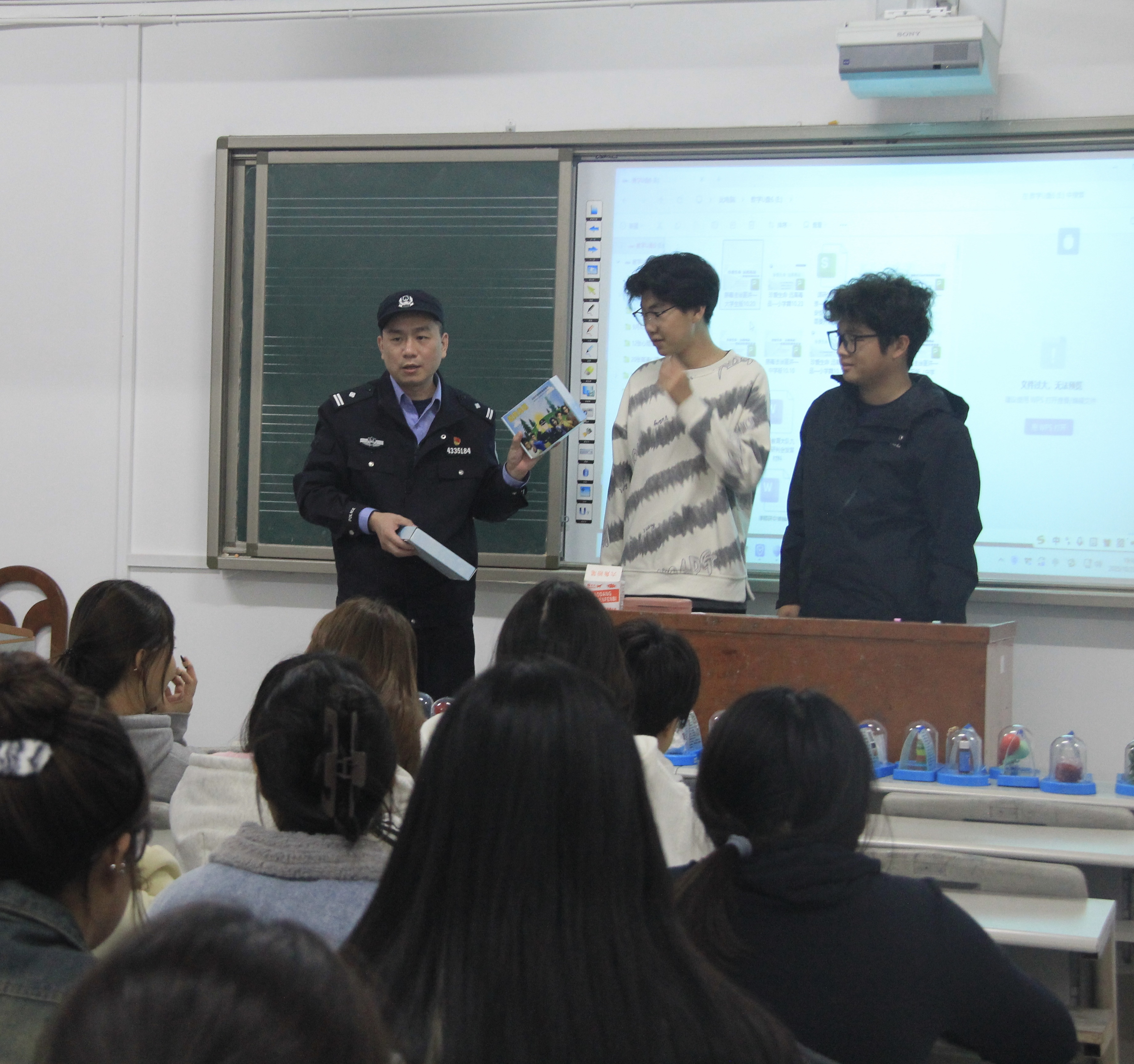肖警官通过展示仿真毒品模型、发放禁毒宣传资料、开展有奖问答等多种形式,向学生详细介绍毒品的种类、危害及防范措施。生动的讲解与直观的展示,使学生对毒品形成了更深刻的认识。值得一提的是,本次讲座创新引入了AR虚拟体验设备。在肖警官的指导下,同学们分批通过AR技术模拟感受吸食毒品后产生的视觉扭曲、身体失控等不良反应。这种沉浸式体验使抽象的危害变得可感可知,让同学们真切体会到毒品对人身心的摧残,深刻认识到“远离毒品、珍爱生命”不仅是口号,更是每个人必须坚守的底线。