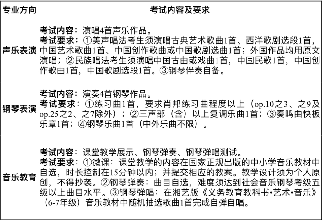 (一)我院音硕士-135200招生计划14人(音乐表演拟录取7人,音乐教育拟录取7复试考生执行教育部公布的《2025年全国硕士研究生招生考试考生进入复试的初试成绩基本要求》的成绩要求(A类考生),同时符合《湖南理工学院2025年硕士研究生招生简章》的相关规定及要求,且资格审查合格。