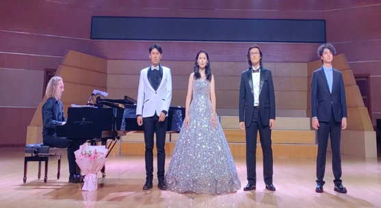 本场晚会共计十八首曲目,由赵晨旭演唱的柴可夫斯基著名作品《仅用一个字眼》拉开序幕。结实、柔韧的男中音营造出浓烈的浪漫氛围,吸引了众多观众的目光。而后,郑雨琳、王博、吴子夷分别演唱了《这儿真好》《来吧,莱奥诺拉》《理想佳人》等音乐作品,充分展示了他们扎实的专业基础和高超的演出实践水平。演唱作品囊括中外优秀声乐作品,多风格演出让现场掌声雷动,经久不息。