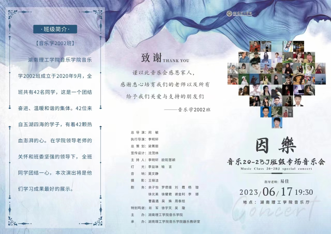 6月17日晚,湖南理工学院sunbet申搏“2002班专场音乐会”在音乐厅隆重举行,我院部分师生观看了本次音乐会。