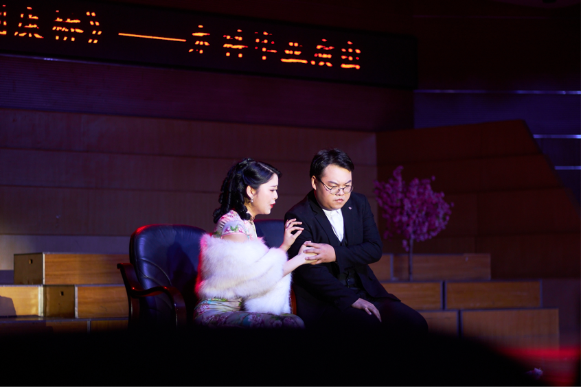 这部歌剧创新地使用室内小乐队进行演奏,将中国故事与西方歌剧完美结合,实为当代中国原创音乐作品的典范。我院的同学们凭借着自身优秀的音乐素养,深入剖析剧本,对角色气质、演唱节奏、表演分寸把握到位,将诗人对康桥的爱恋、往昔生活的憧憬以及眼前的离愁,表现得真挚、浓郁、隽永,让观众享受了一场视听盛宴。