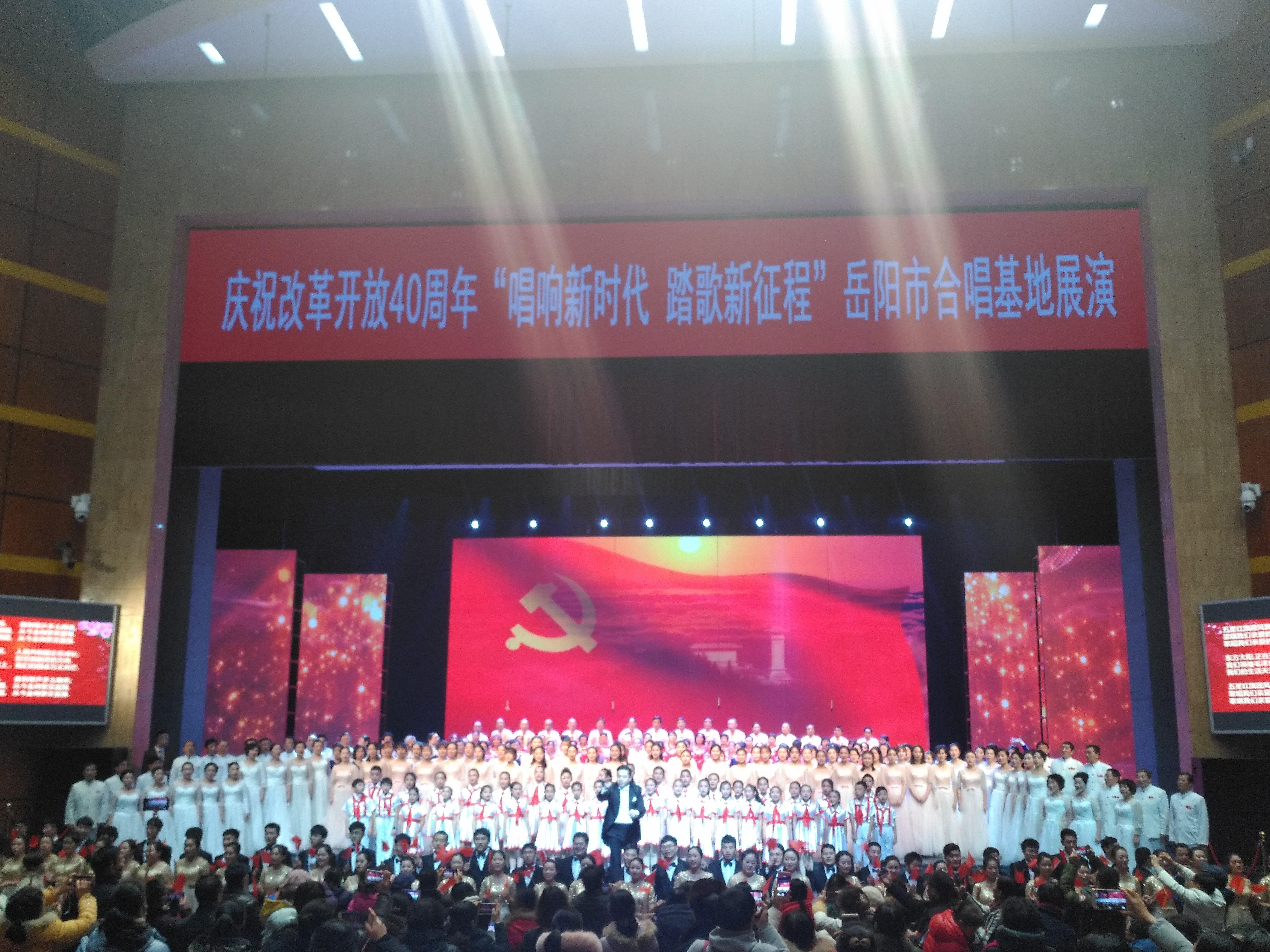 2018年12月28日下午,由中共岳阳市委宣传部、岳阳市广电局主办的庆祝改革开放40周年“唱响新时代、踏歌新征程”——岳阳市合唱基地展演活动在岳阳文化艺术会展中心大剧场隆重举行,湖南理工学院sunbet申搏作为全场艺术指导单位,此前不仅为多支参演队伍派出专业老师或研究生进行长期指导,同时还派出了两个合唱团(一个混声合唱团,一个女声合唱团)参加了展演活动,我院师生为岳阳市合唱基地所做的工作以及现场精彩的演出获得了出席展演的领导们的一致好评。