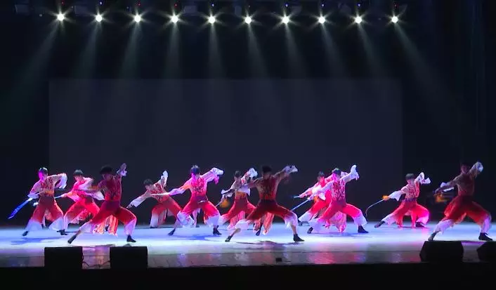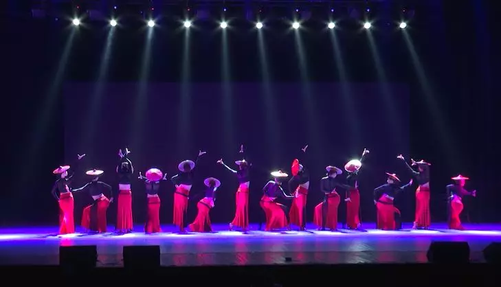 随后,在灯光的照耀下,舞台上一群充满热情的“藏族人民”出现在观众的视野中,激昂的音乐、统一的节奏步伐,展示了舞者强大的气势,台下观众席传来阵阵掌声,晚会气氛被推到了高潮,这支舞象征着她们在大学生活中充满着无限的激情。