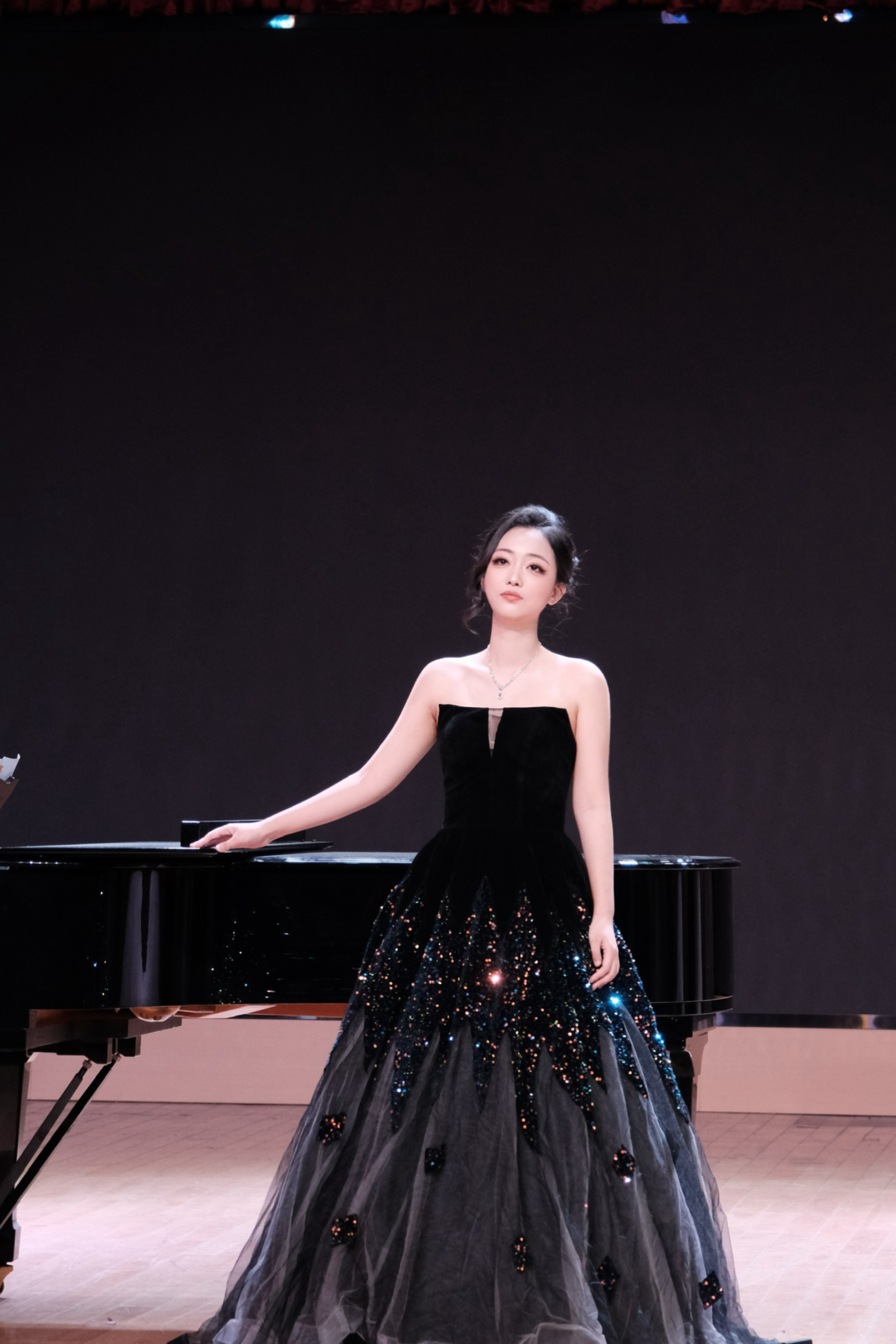 音乐会渐入尾声,宗芷带来莫扎特经典作品《年轻姑娘应该懂得》,以俏皮演唱风格诠释出歌剧的诙谐与灵动,彰显出极强的风格驾驭能力;随后,《美妙时刻即将来临》接续登场,轻盈声线传递出角色对爱情的懵懂憧憬,将莫扎特音乐的纯真与浪漫演绎得恰到好处;最后,音乐会在舒伯特《小夜曲》的温柔旋律中落下帷幕,她以温润声线将浪漫情愫融入每一个音符,为这场艺术盛宴画上圆满句号。