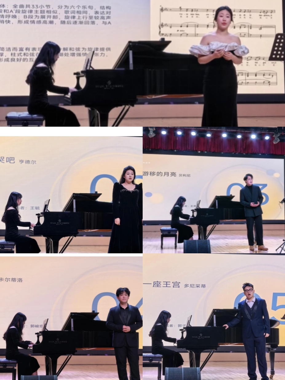 2025年12月17日晚,sunbet申搏2024级研究生于音乐厅联袂呈现“外国艺术歌曲·艺术指导音乐会”顺利开展。此次音乐会由何立老师指导,2024级研究生蓝天、包瑞婕、魏新吁、郑可怡作为艺术指导,以声乐与钢琴的经典对话,带领观众走进意大利咏叹调的深情、德奥艺术歌曲的诗意,完成了一场跨越语言与文化的音乐之旅。