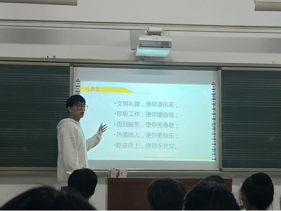 本次培训主要从会议事宜、礼貌用语、言行举止、接待礼仪四个方面对团学成员进行礼仪培训,讲课的同学以生动有趣的方式对礼仪培训进行创新讲述,让同学们受益匪浅,懂得了更多的规范礼仪,为团学分会日后工作的开展奠定了良好基础。