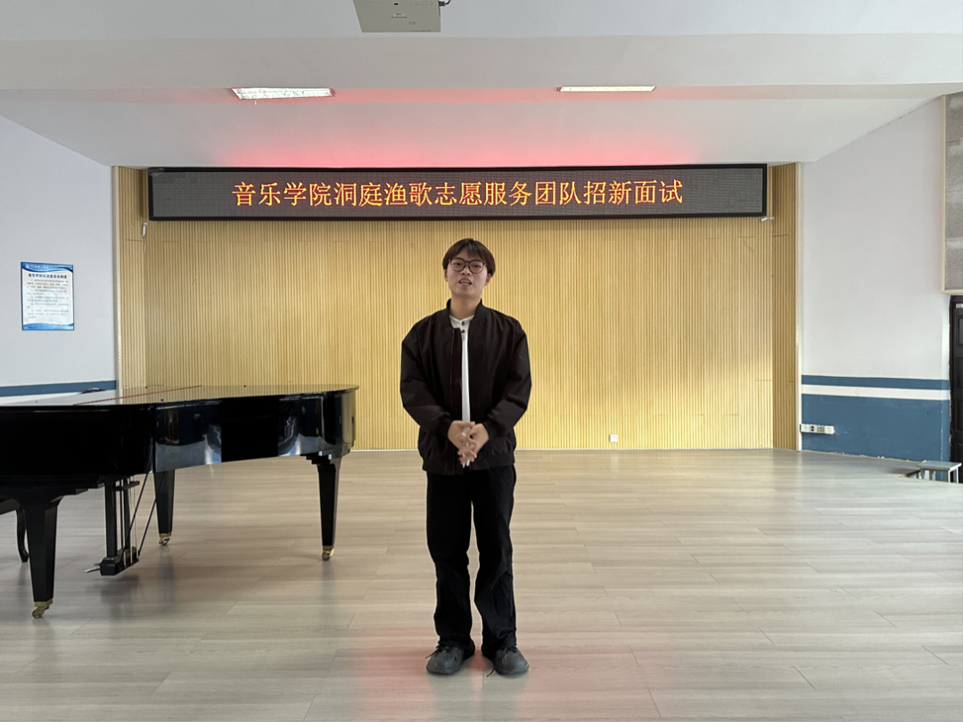 最后,洞庭渔歌志愿服务团队负责人侯南根据同学们的面试表现进行了总结,他对同学们的积极参与表示感谢,对大家的精彩表现给予了充分肯定。同时,他强调,洞庭渔歌志愿服务团队旨在用音乐传递温暖和爱,并将这一份国家级非物质文化遗产传承下去。希望新加入团队的同学们能够秉持初心,不断提升专业能力,在未来的志愿服务中发光发热。