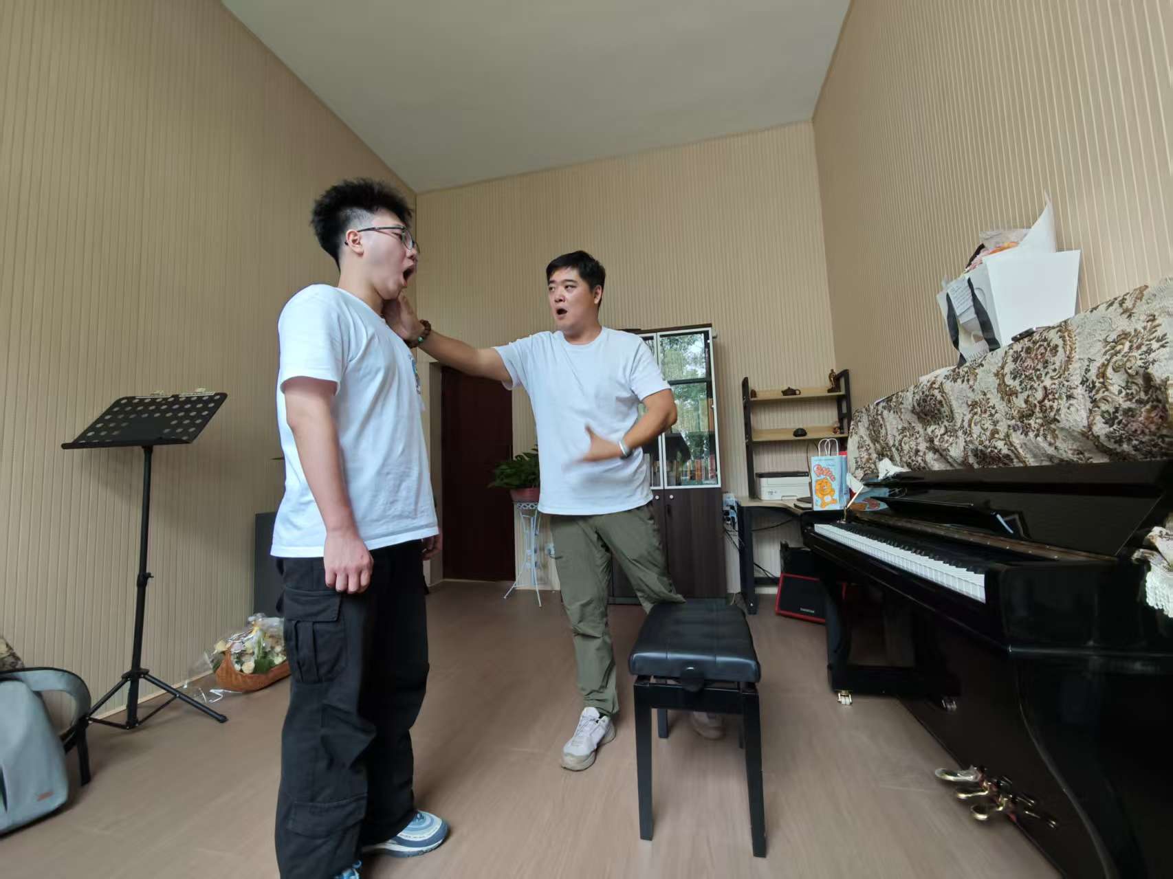推开崭新琴房的门扉,明亮的的灯光下,是专注的身影与指尖的舞蹈。钢琴专业的学生在黑白键上反复打磨着高难度的段落,时而凝神思索,时而快速掠过,汗水悄然浸湿了额角;各类乐器的演奏家们对着谱架上的乐谱,一遍遍调整着手法,力求每一个音符都饱满圆润;声乐专业的学生则对着镜子反复练习气息的控制与情感的投入,悠扬的歌声穿透了热浪,与窗外的湖水波光相映成趣。窗内是忘我的投入,窗外是静谧的南湖,勤奋的灯火与星光辉映,照亮了通往艺术殿堂的阶梯。