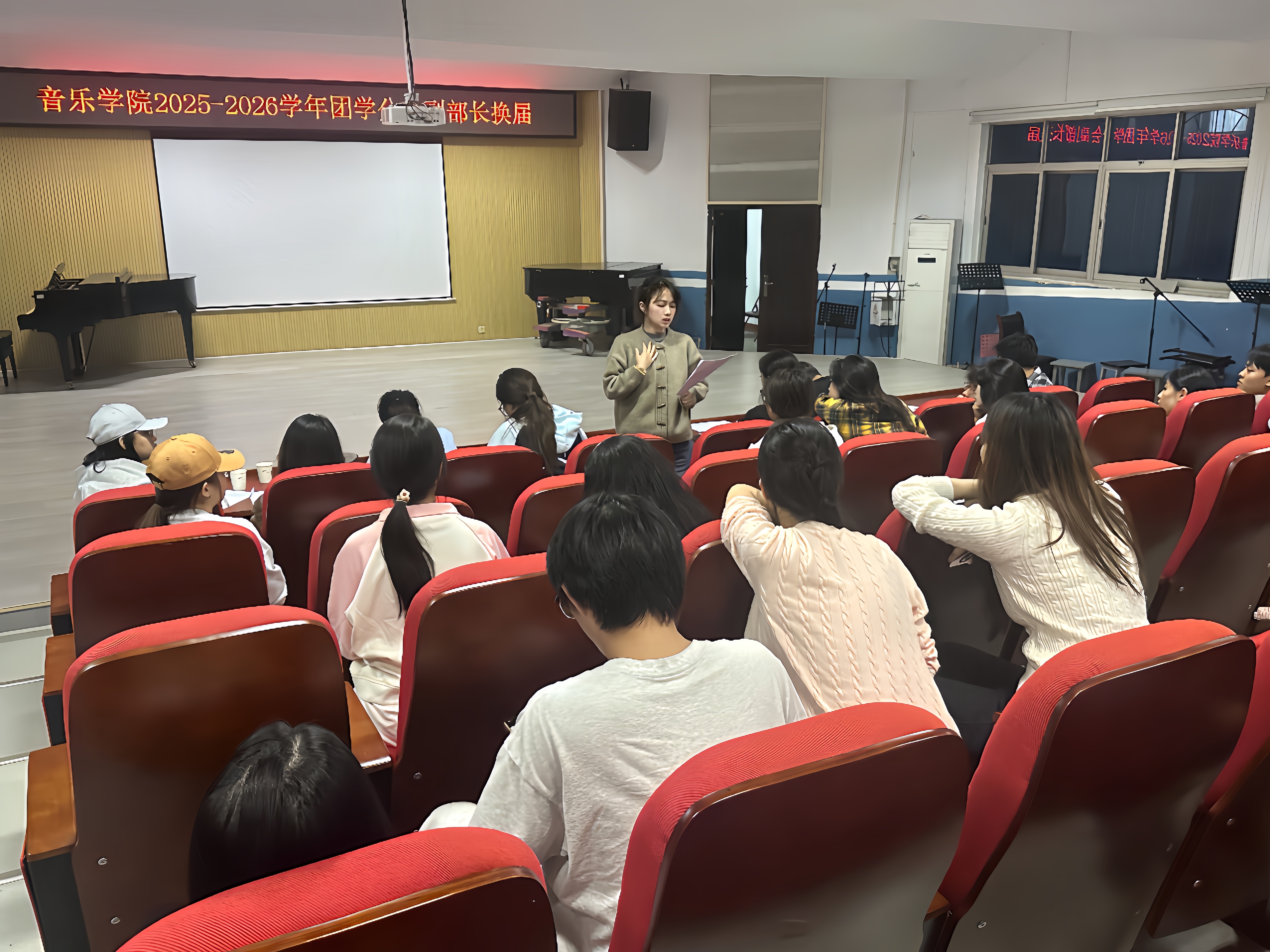 2025年9月26日晚,sunbet申搏于1T2教室举办2025-2026学年团学分会副部长竞选大会。院团委书记李亮菁、主席团成员及各部门部长担任本次大会评委。