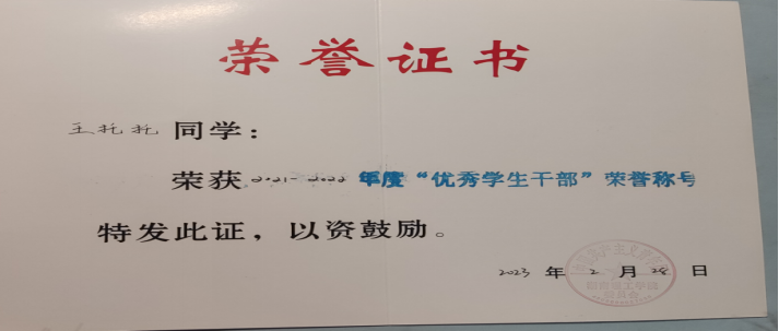 在2023-2024这一年中,该生并没有因此感到自满,而是反思自己与其他优秀的同学有何不足,无论是理论知识还是专业知识,该生遇到不懂的时候认真请教老师,与同学交流,比以往更加认真刻苦。在思想上不断突破和提升自己,积极向党组织靠拢,成为了一名中共预备党员,平时更是向优秀的党员同志看齐。这一年中,以学习为主,在学习方面要求上进,勤奋研读,时刻提醒保持一颗积极向上的心和奋发向上的学习态度。在上理论课的时候,总是能看到该生认真听讲的身影,并在艺术舞蹈概论中取得了98的成绩。大学外语对于艺术生来说是比较难的科目,这一年,该生稳扎稳打,在保证原有的练习舞蹈专业的时间,该生积极加强对外语的学习,遇到不懂的语法或口语时主动询问老师,稳中求进,在英语第一学期和第二学期的期末考试中都取得了95分的成绩。加强学习的同时也没忽视全面发展,工作上担任了学习部部长和2305班助理班主任的职位,积极完成老师下发的任务和协助其他部门完成学院的工作。同时该生十分热心于志愿服务活动,参加了学校组织的暑期三下乡社会实践活动、贫困山区捐赠活动和志愿服务活动,累计志愿服务时常达390多个小时。通过不懈的努力,终于在 2023年综合测评中取得综测第2名的优异成绩,成功评选为“2023学年度国家励志奖学金”获得者。也获得“优秀女生”、“优秀共青团团员”、“三好学生”的称号,第十八届读书节活动中获得了二等奖。在忙碌自己的同时也没有忽视集体,跟随自己的小组成员参加了第十届文化艺术节花漾舞蹈大赛,并取得了第一名的好成绩、和舍友参加了寝室文化节,在手账大赛中取得了三等奖的成绩、并和自己的工作伙伴参加了学院的“互联网+”创新创业获得了优胜奖。