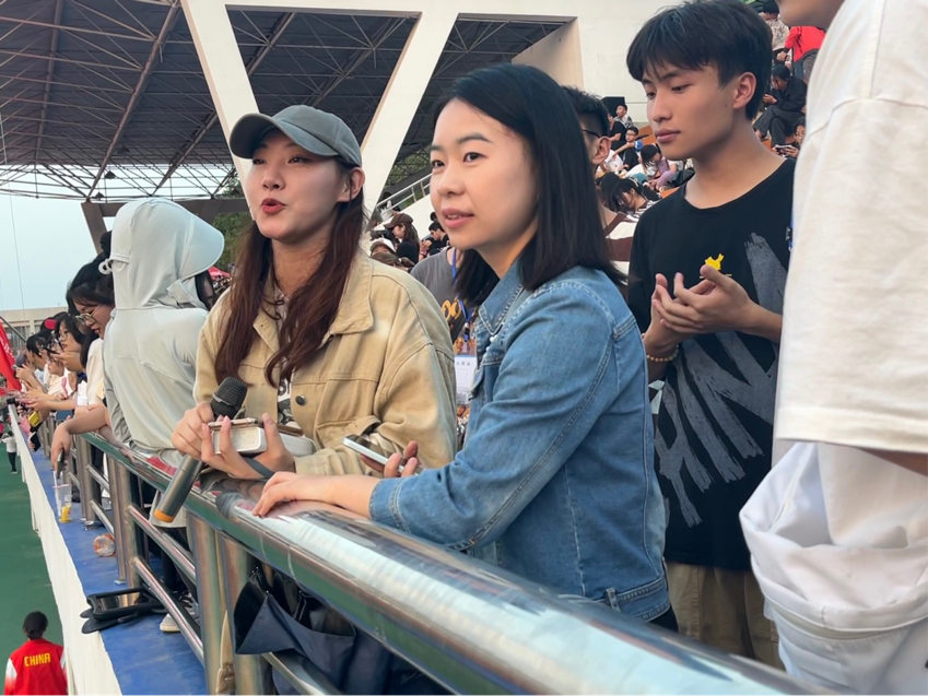 不止同学们在观众席上为运动员们摇旗呐喊,我院团委书记唐瑶老师也亲临现场慰问,为我院的运动健儿们加油鼓劲。