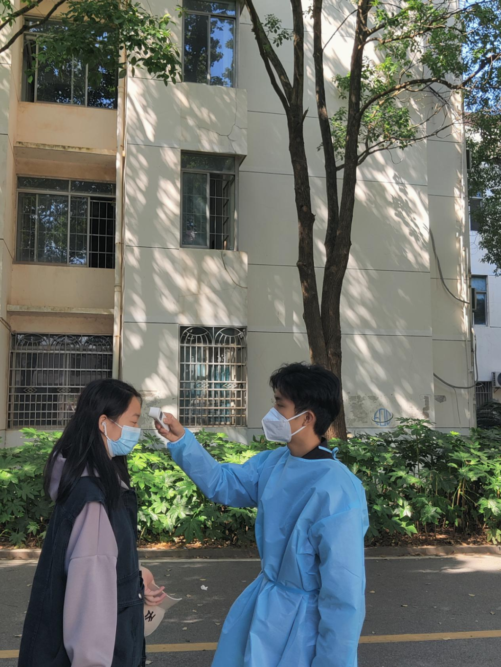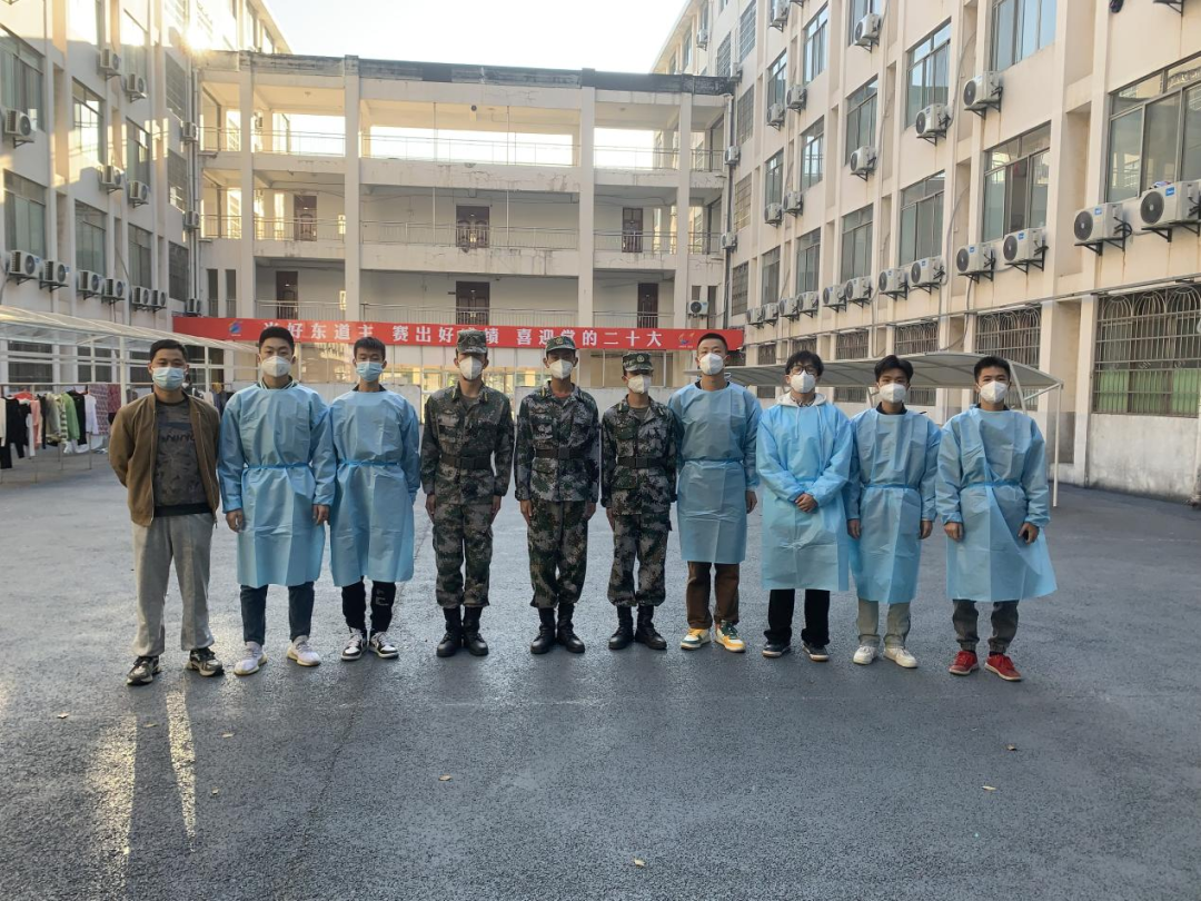 今年20出头的小伙子们在疫情突然来到我们身边时,毅然披上防护服,在园区核酸检测登记及卡点值守服务,扫核酸检测码、登记、测量体温、消杀、卡点放行,一丝不苟。