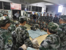 白天的训练结束了,晚上教官来到宿舍楼,指导新兵们进行内务整理学习。