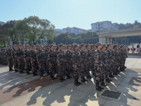 迎着朝阳,新生们迈着整齐划一的步伐来到了训练场,正式的开始了他们的军训生活。