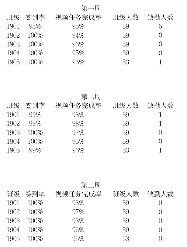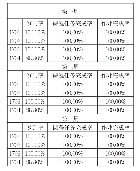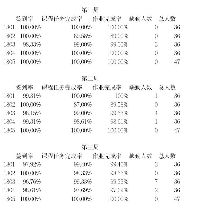 前三周各课程各班级的签到率和课程任务完成率叭~