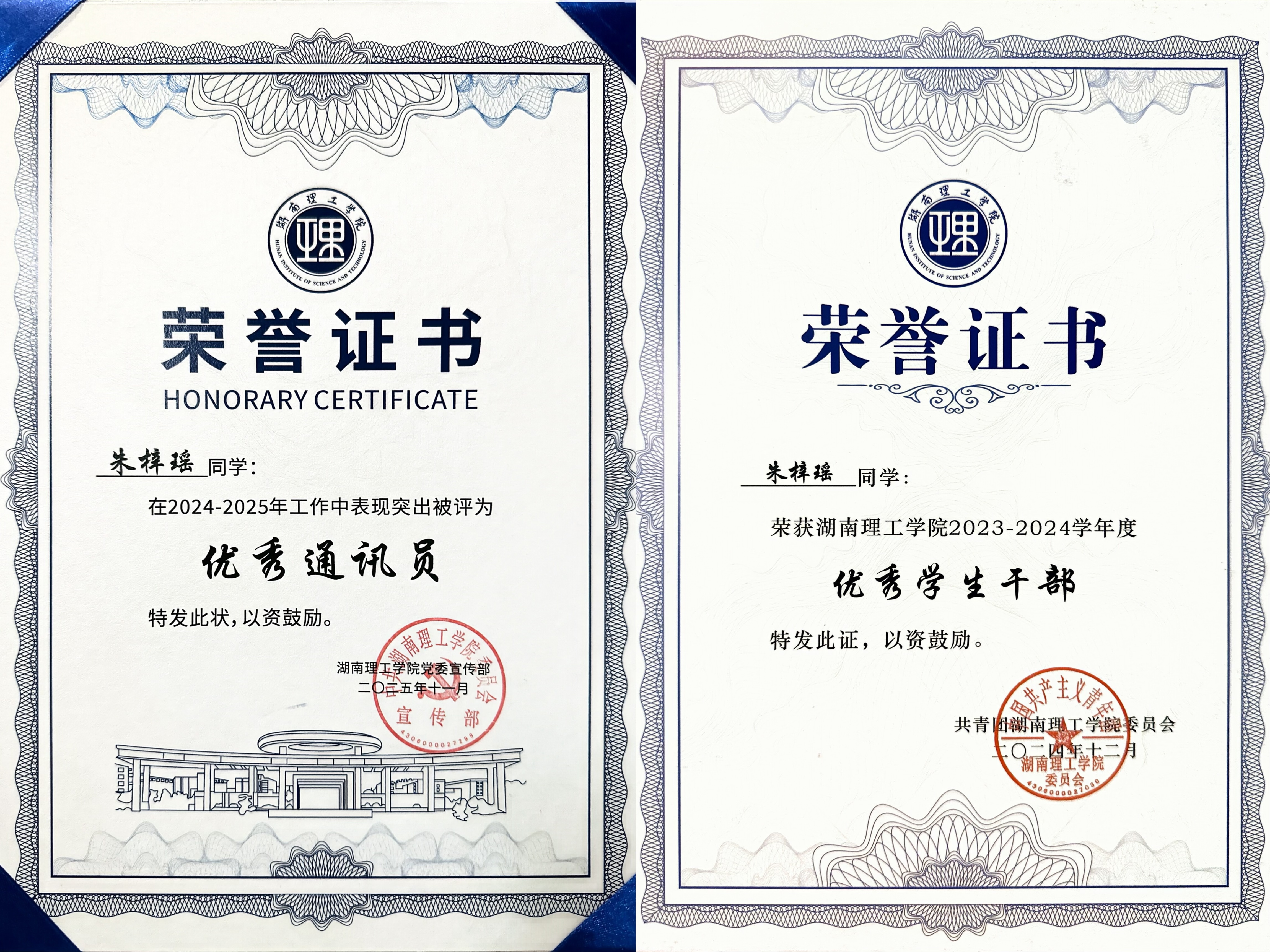 身为sunbet申搏团学分会团委学生副书记、宣传部部长、班长及洞庭渔歌志愿服务团队宣传组负责人,朱梓瑶始终以高度的责任感和严谨细致的态度投入各项工作。她不仅高效参与组织学院多项学生活动,还负责运营学院宣传平台,累计撰写并发表稿件数百篇,有效传播校园正能量。在班级工作中,她积极组织同学参与各类集体活动,带领班级在学院拔河比赛中荣获第一名,展现出卓越的组织协调能力和团队凝聚力。凭借出色的工作表现,多次获评校级“优秀共青团员”“优秀通讯员”“优秀女生”等荣誉称号,以实际行动诠释了学生干部的担当与价值。