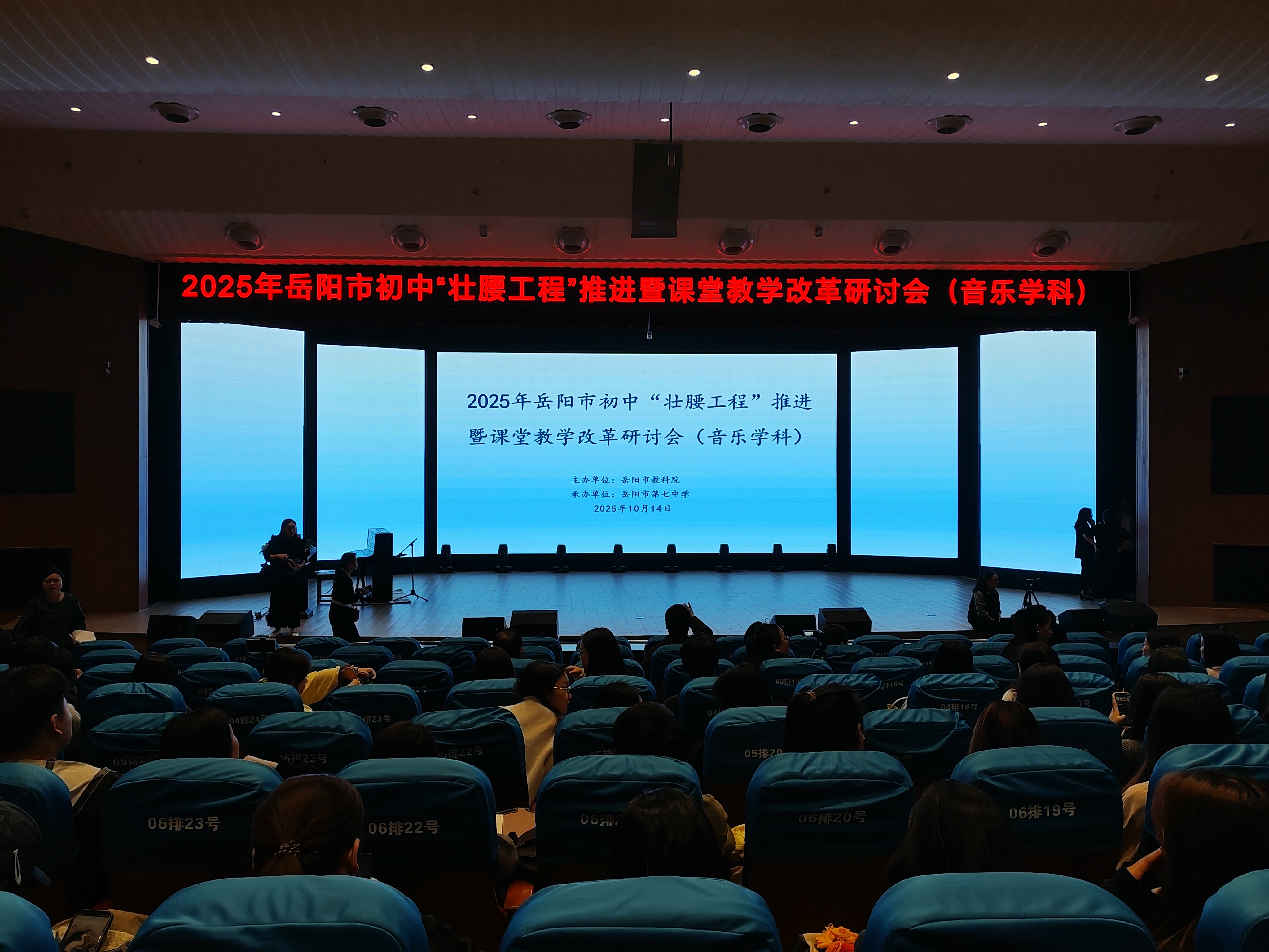作为湖南理工学院sunbet申搏的音乐教育实习生,这个秋天,在主持行政工作的副院长庞毅、主持党委工作的院党委副书记喻俊、副院长刘栋梁、副院长冯毅等院领导的统筹规划,涂雅蓝、侯新兰等一众老师的精心组织下,我们参与了岳阳市“壮腰工程”推进暨课堂教学改革研讨观摩活动。这是学院首次大规模组织音乐教育教学实践观摩活动,我们在岳阳市七中的大雅楼综合演艺厅里,完成了一次关于音乐教育实践的深度探索。