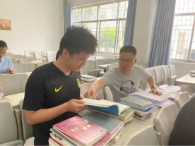 (葛传才老师正在翻阅学生读书笔记)