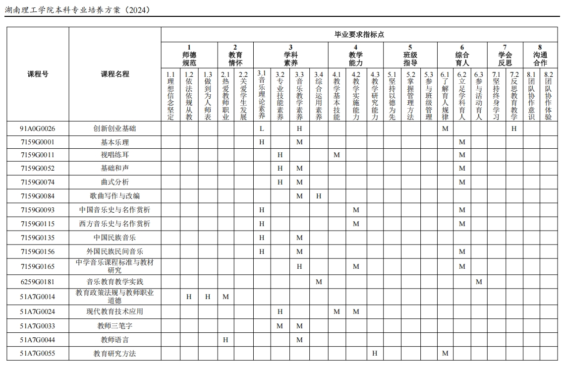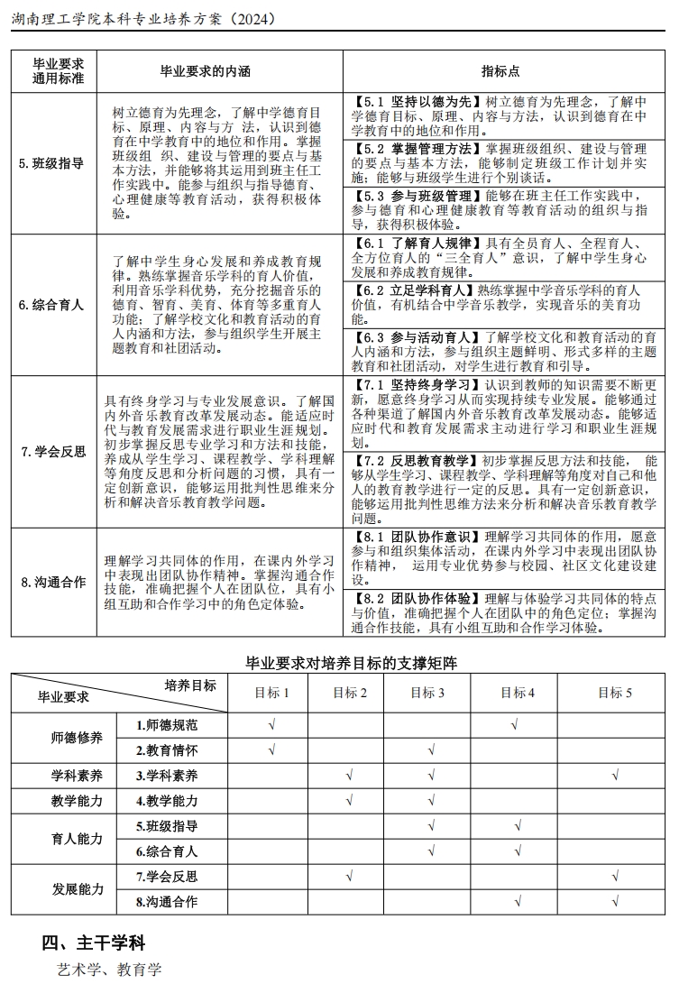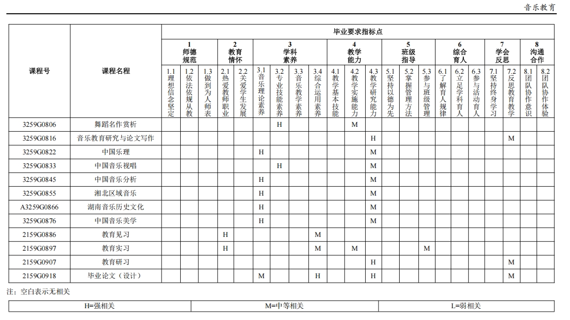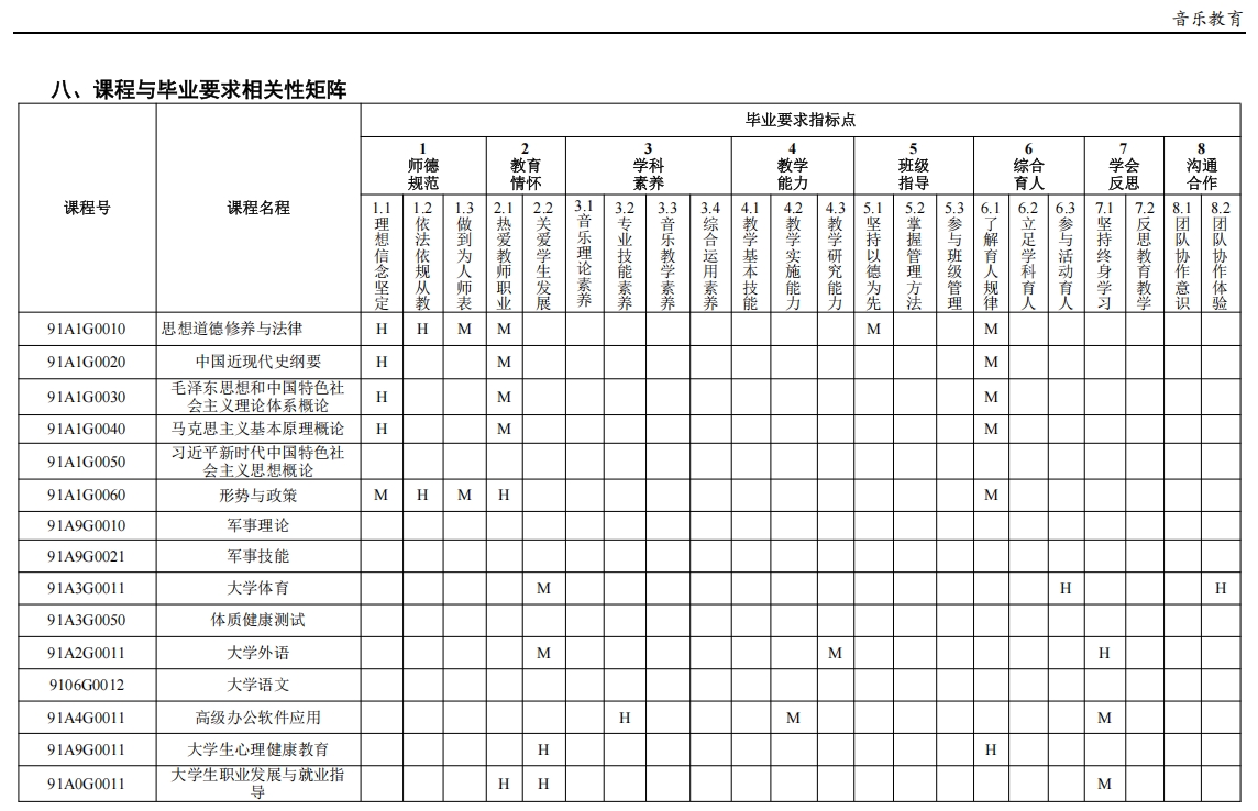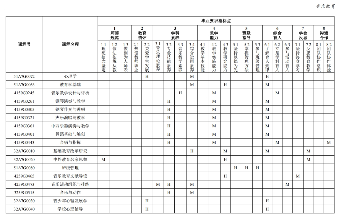 目标 5(发展能力):能够主动适应基础教育改革,紧跟音乐教育专业及相关学科的国内外发展动态。具有一定创新意识,能运用批判性思维方法反思教育教学实践。具有自主学习和终身学习的意识,有不断学习和适应发展的能力。
