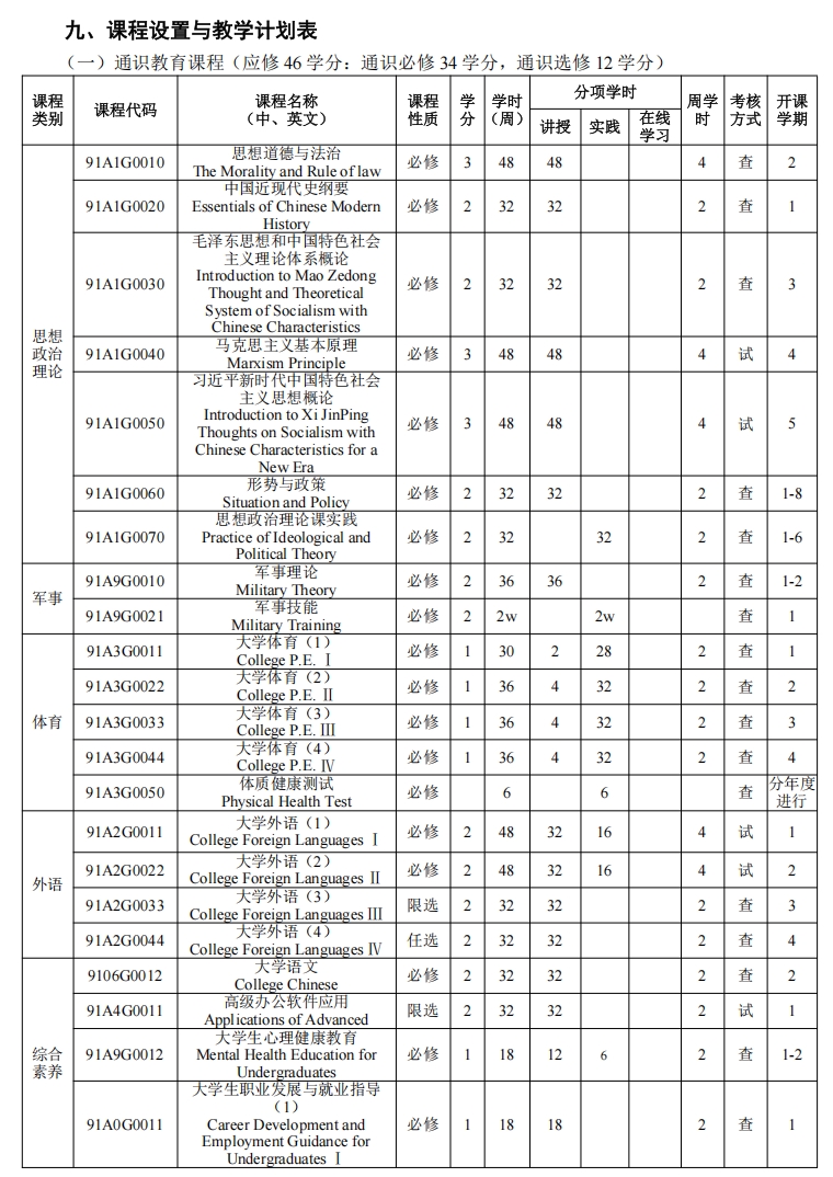 考核分为考试、考查两种方式。考核方式依据课程性质,在课程教学大纲及考核大纲中予以明确规定。学科基础课和专业基础课以考试为主,选修课以考查为主。考核成绩评定可采用百分制、五级制和两级制 3 种。实行学分制和学分绩点制。执行学校考核成绩与学分绩点的对应换算规定。