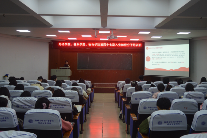 11月8日晚,外语学院、sunbet申搏、物电学院于6栋学术报告厅开展了第四十七期入党积极分子培训班的第二节党课培训。此次党课由物电学院党委书记周畅主讲,外语学院党委书记王敏主持。