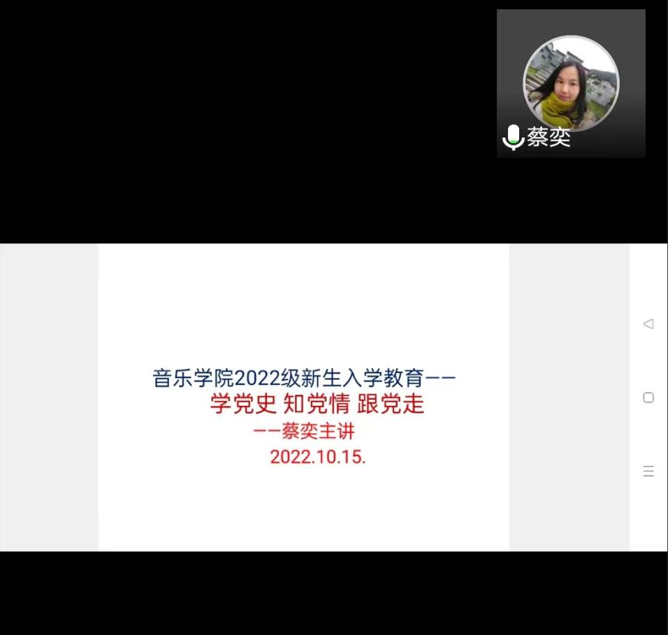 10月15日上午,我院新生以腾讯会议的形式参加了“学党史、知党情、跟党走”为主题的入学教育活动。本次活动由我院党委副书记蔡奕主讲,2022级辅导员唐瑶主持。