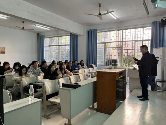 11月26日中午,我院学生党支部在4105教室开展主题党日活动,由我院党委书记黄皓华为学生党员教唱《国际歌》以及《国歌》。