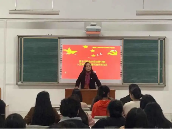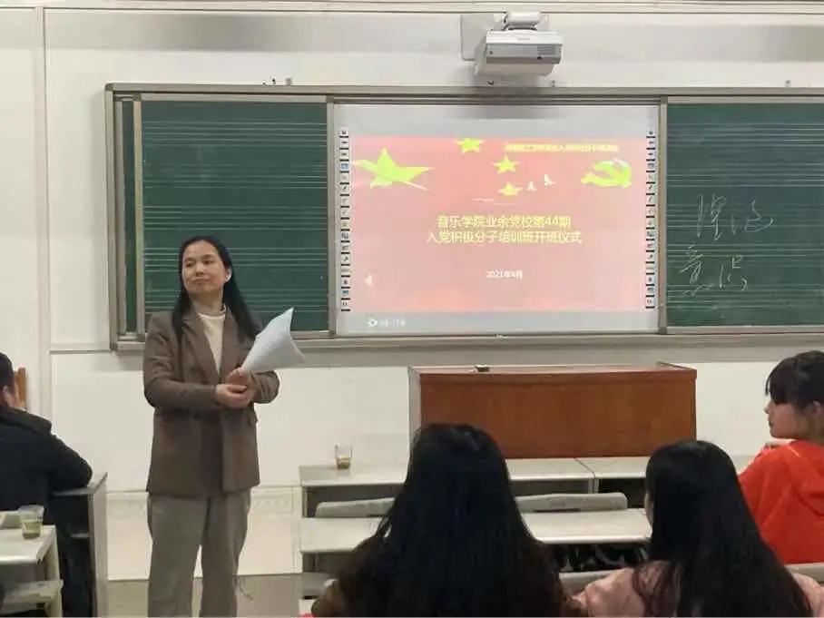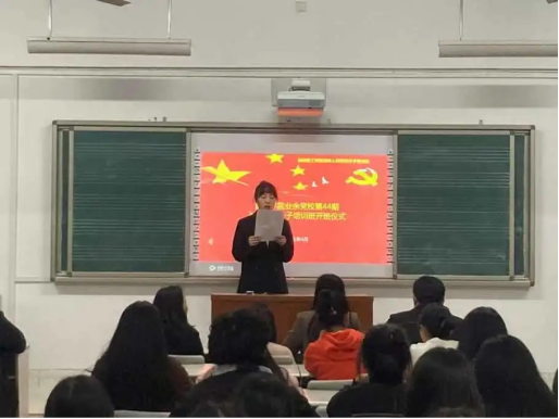 我院业余党校第44期入党积极分子培训班于2021年4月9日于4105教室正式开班,学院党委副书记蔡奕,研究生党支部书记方从戎、团委书记邹敏、团委副书记葛传才以及本次培训班全体学员参加,会议由党委组织员刘姣花主持。