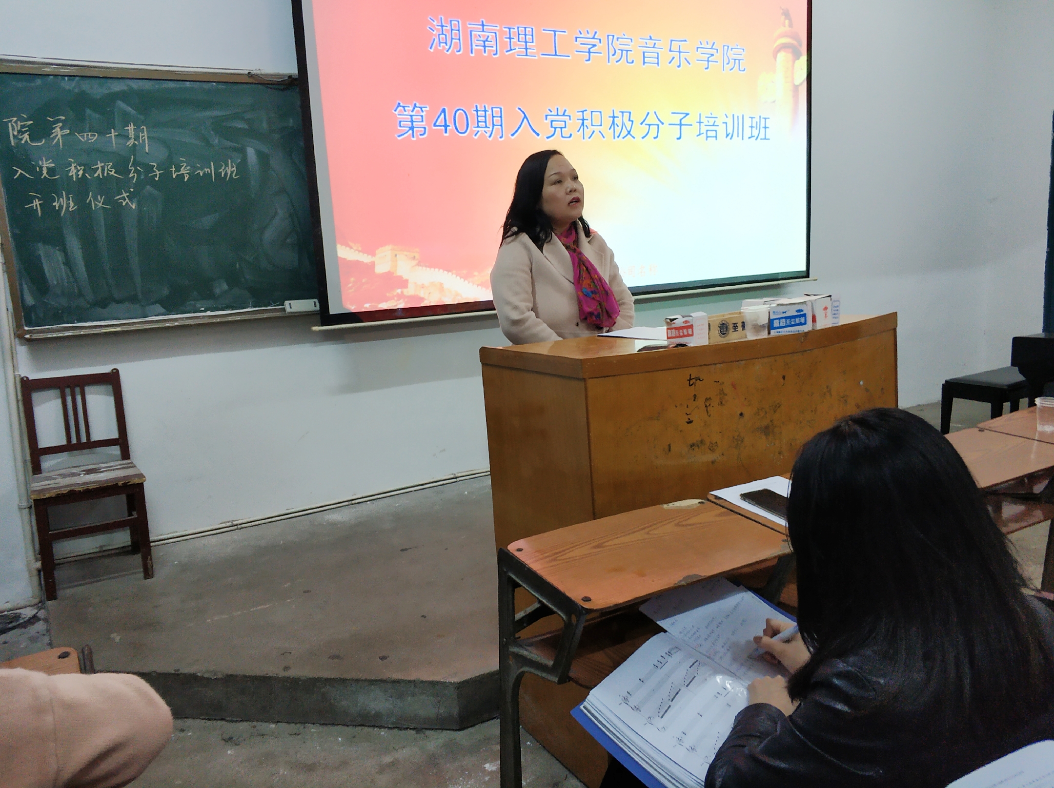我院分党校第40期入党积极分子培训班于2019年4月13日晚正式开班,院党总支副书记钟坚、组织员刘姣花出席、部分预备党员、本次党员发展对象、入党积极分子参会。会议由团学分会组织部部长孙明伟主持。