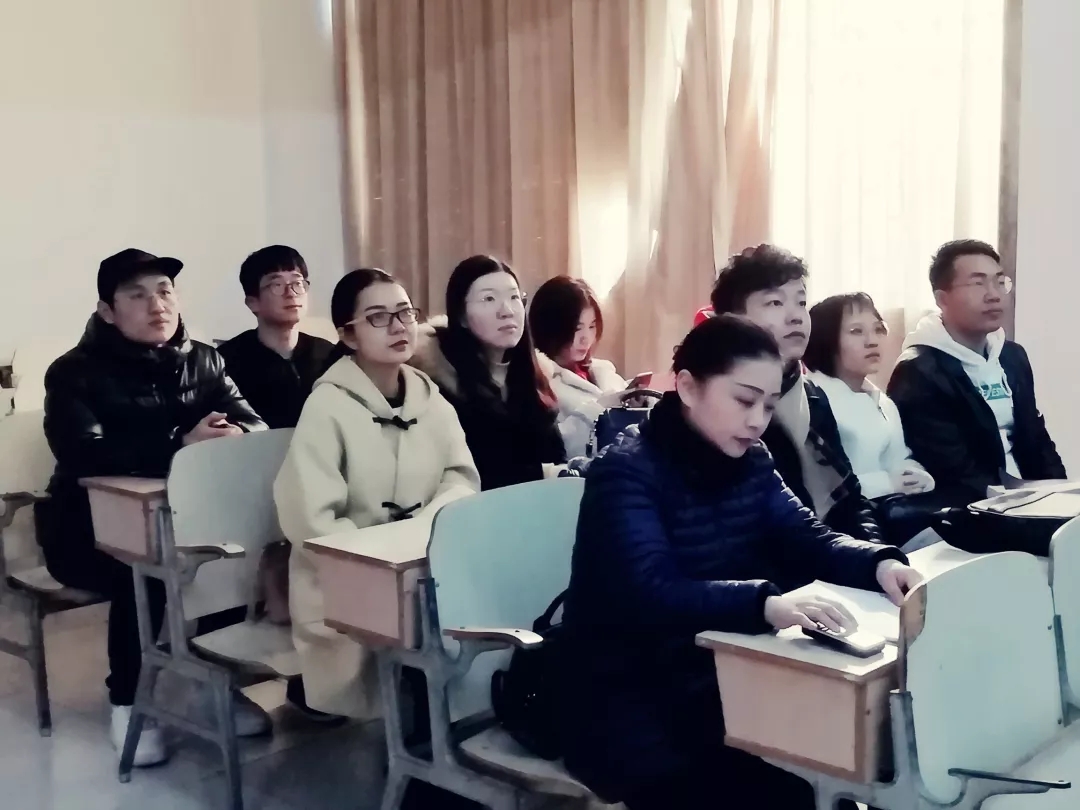 没有教学任务的17名老师在音乐楼音乐欣赏室认真观看了大会直播。