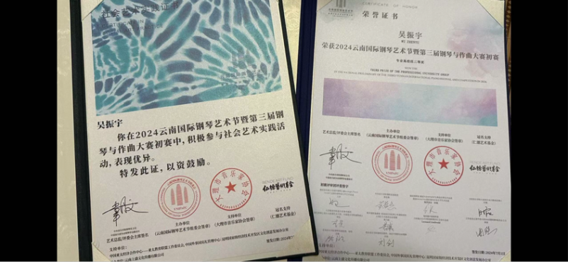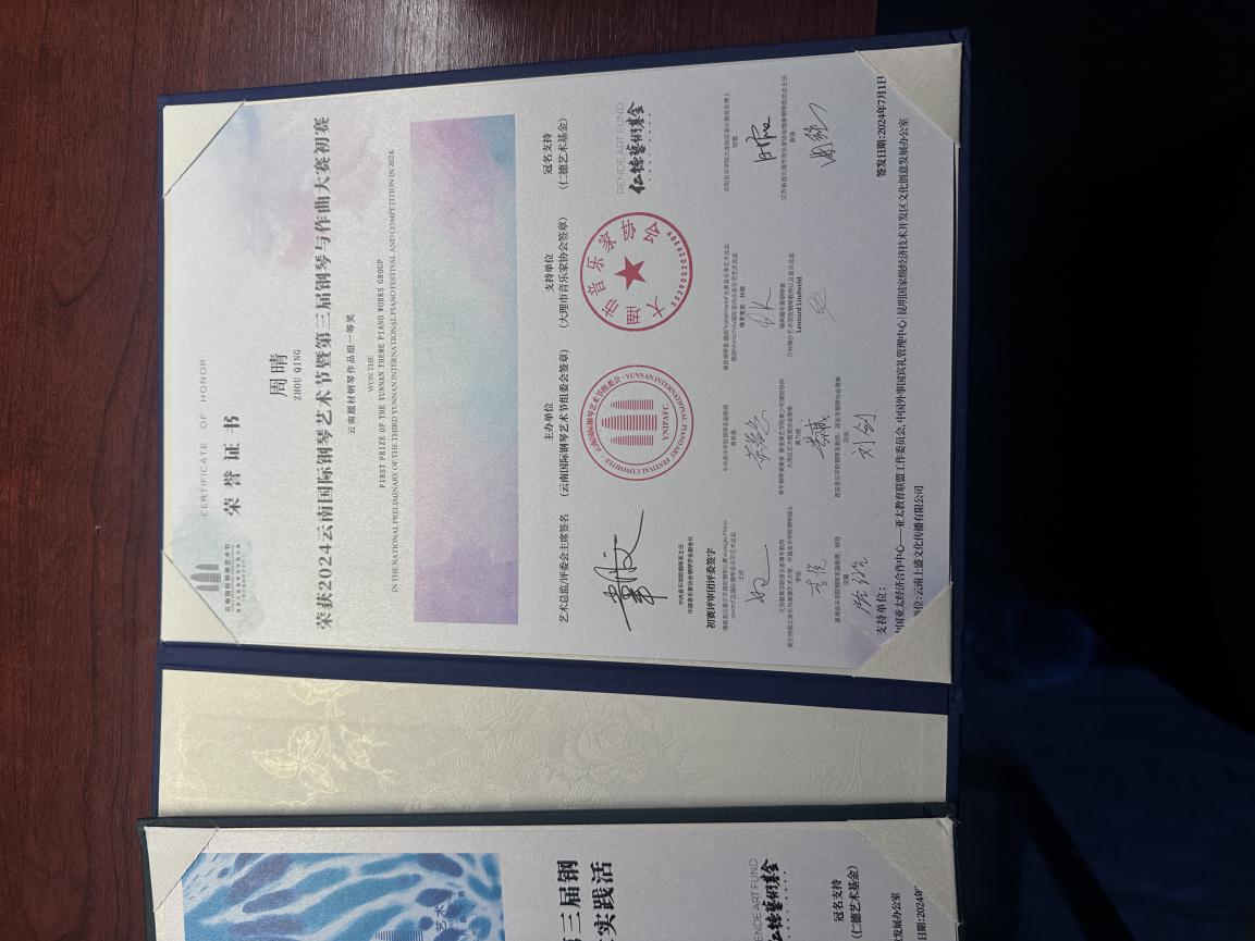 2024 云南国际钢琴艺术节第三届钢琴与作曲大赛 获“云南题材钢琴作品组”一等奖 |
