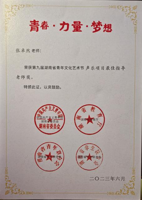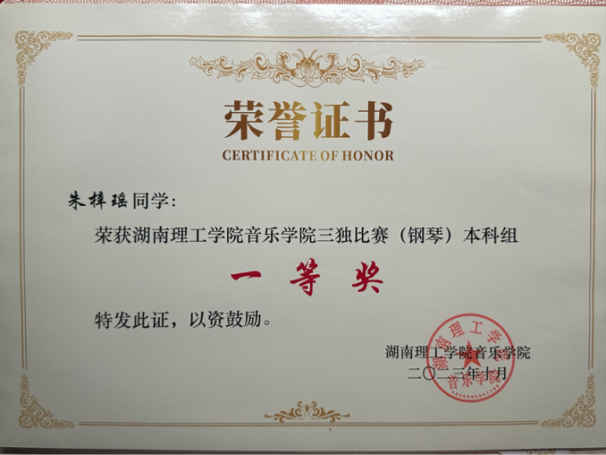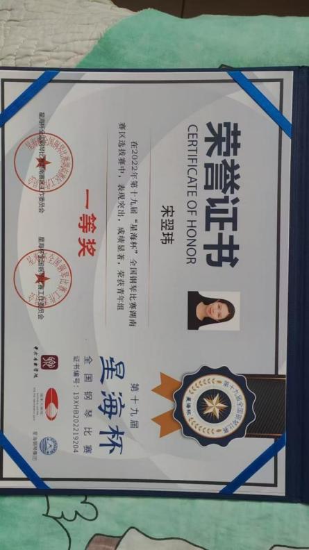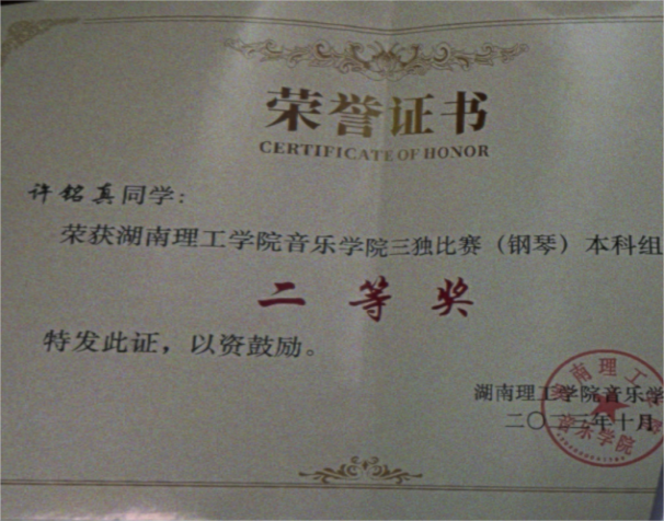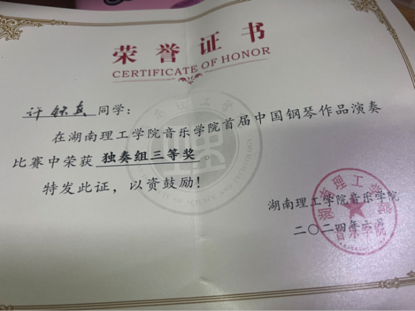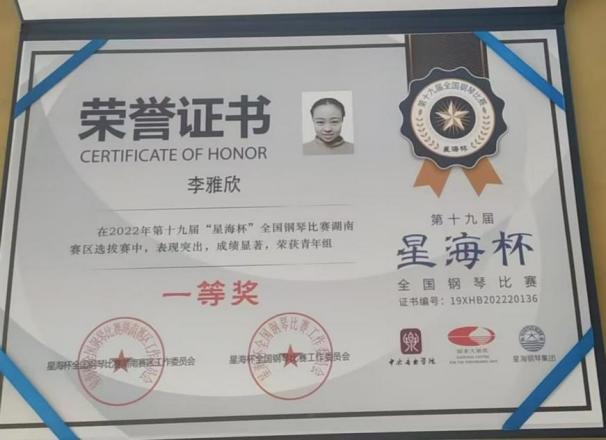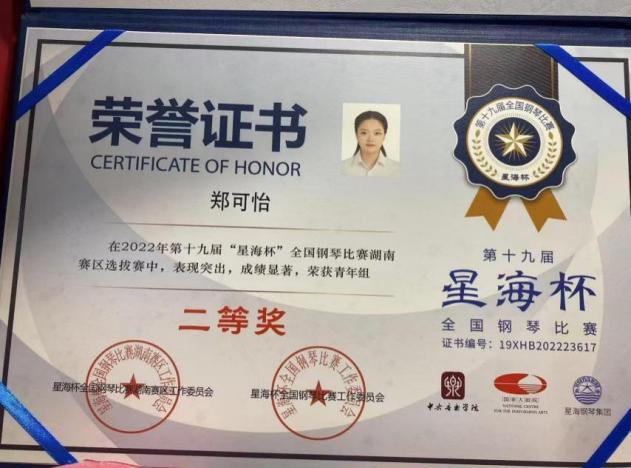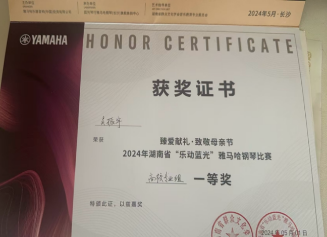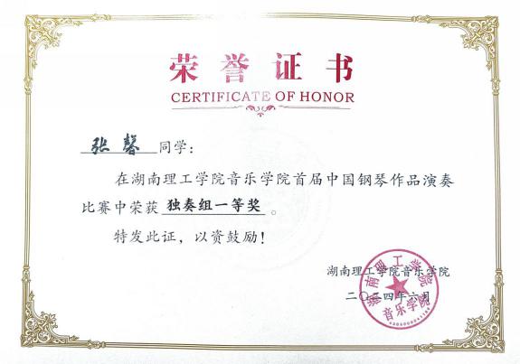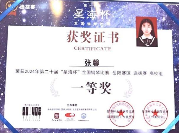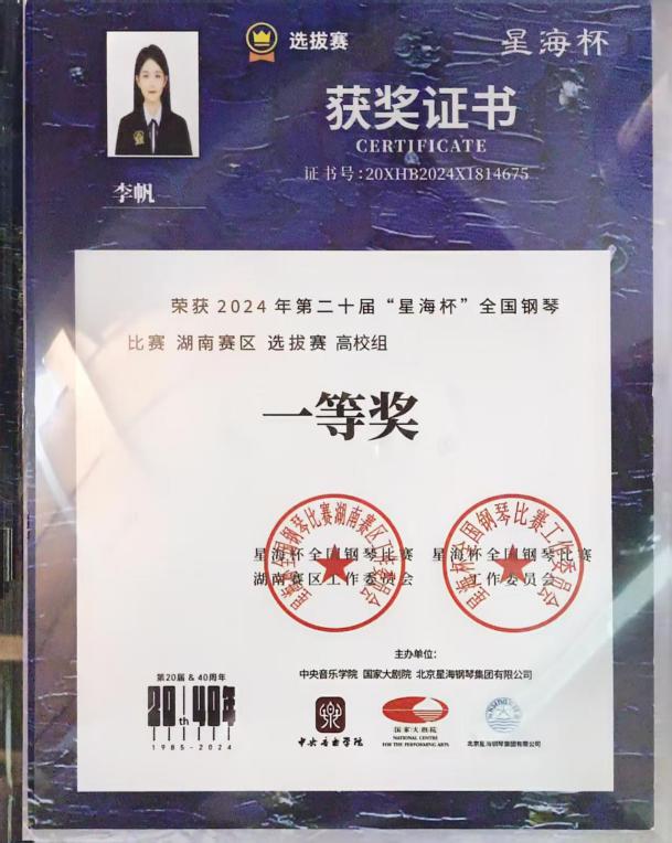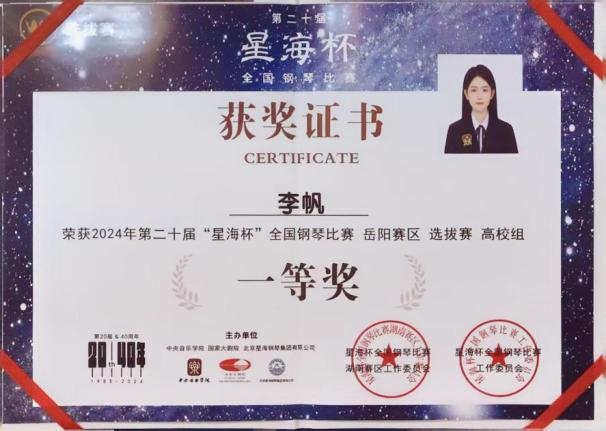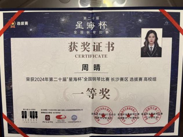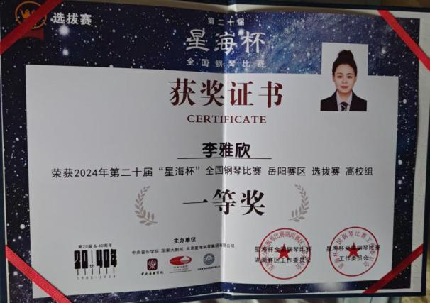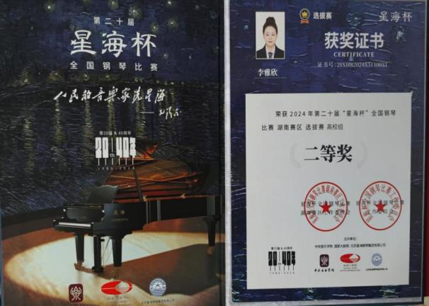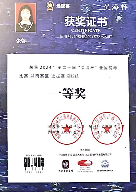 2024“星海杯”钢琴比赛长沙赛区一等奖;湖南赛区一等奖 |