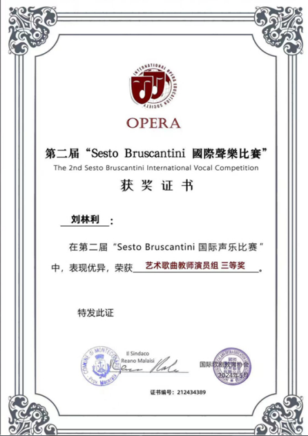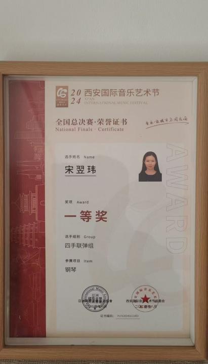 2024年西安国际音乐艺术节全国比赛一等奖。 |