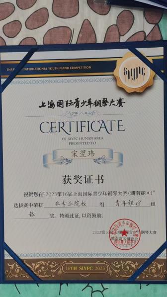 2023年第十六届上海国际青少年钢琴大赛湖南赛区银奖 |