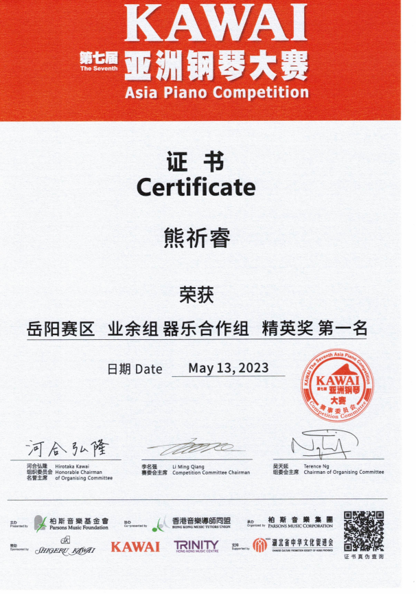 2023年第七届KAWAI亚洲钢琴大赛器乐合作组一等奖 |