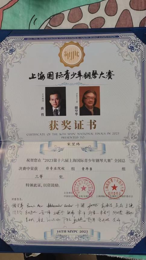 2023年第十六届上海国际青少年钢琴大赛全国总决赛三等奖 |