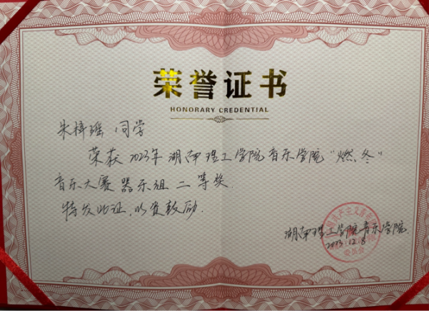 2023年12月湖南理工学院sunbet申搏“燃冬”音乐大赛器乐组二等奖 |