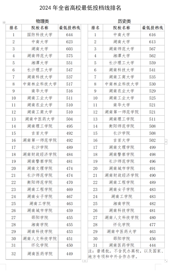 2024年,学校本科招生计划为4250人,其中省内3117人,较上年增加130人。据湖南省教育考试院公布的湖南省2024年本科批次(普通类)平行一志愿的投档分数线显示,今年我校生源质量稳步提升,投档分数线明显增长,彰显了学校良好的社会声誉和办学质量。