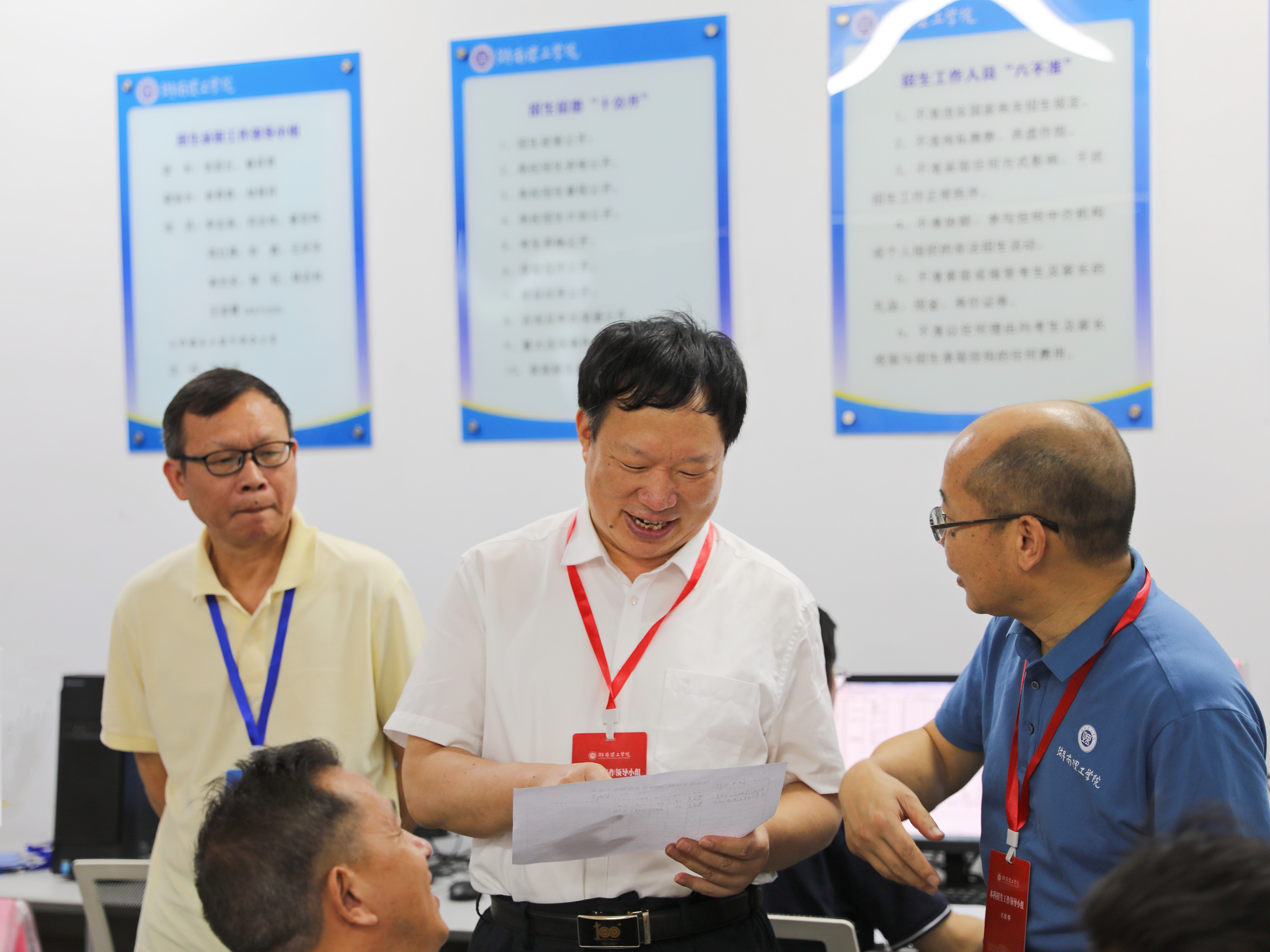 7月21日上午,校党委书记张国云,校长曾祥君,党委委员、纪委书记谢贵辉,党委委员、副校长徐振祥专程到本科招生录取工作现场调研指导工作,看望慰问招生录取工作人员。