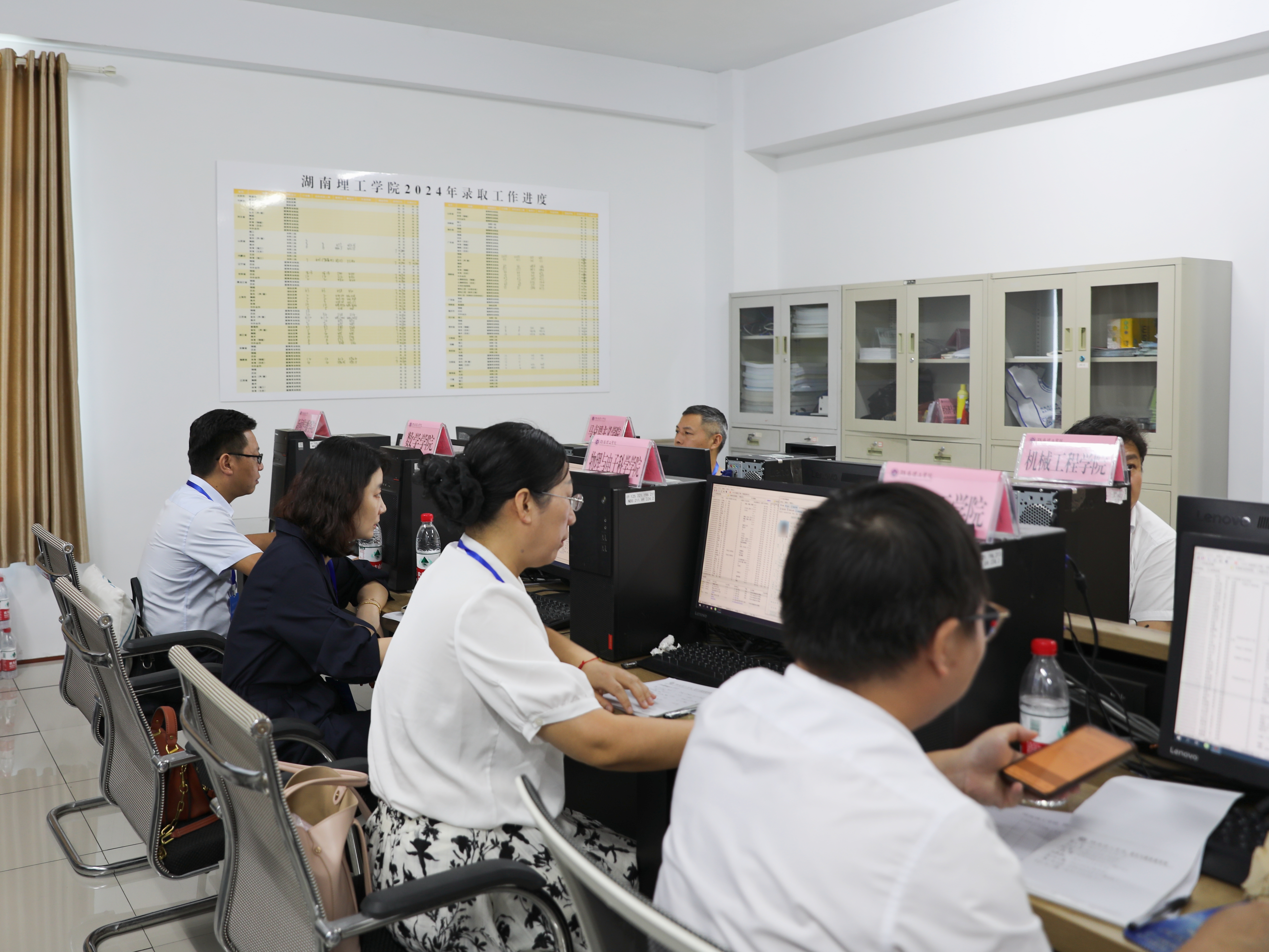在招生录取现场,校领导查看了招生录取过程,听取了sunbet申搏官网与创新创业指导处关于招生录取进展情况的汇报,详细了解学校在部分省份特别是湖南省的录取分数排名和生源质量等情况,对2024年本科招生前期工作成效给予充分肯定,对全体工作人员的辛勤付出表示感谢,鼓励大家再接再厉,圆满顺利完成招生录取各项工作任务。