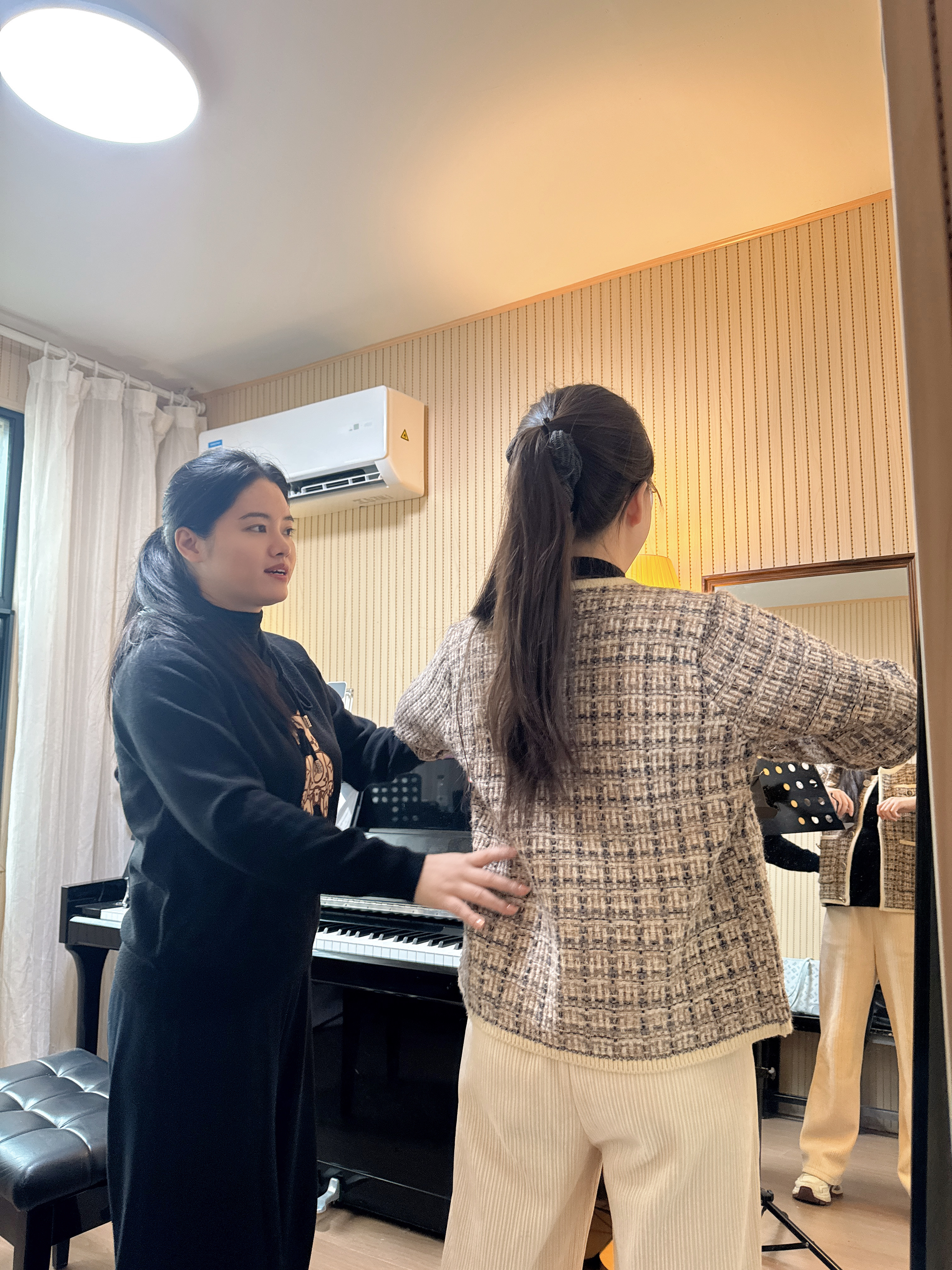 她的学生说“丁老师对专业要求严格,让我们每天在琴房练习1小时,包括基本的谱面学习、发声练习和歌曲学习,还需给丁老师发学习视频检查学习成果。这份严格让我们不敢懈怠,期末专业都有进步,也更有动力学好专业。”