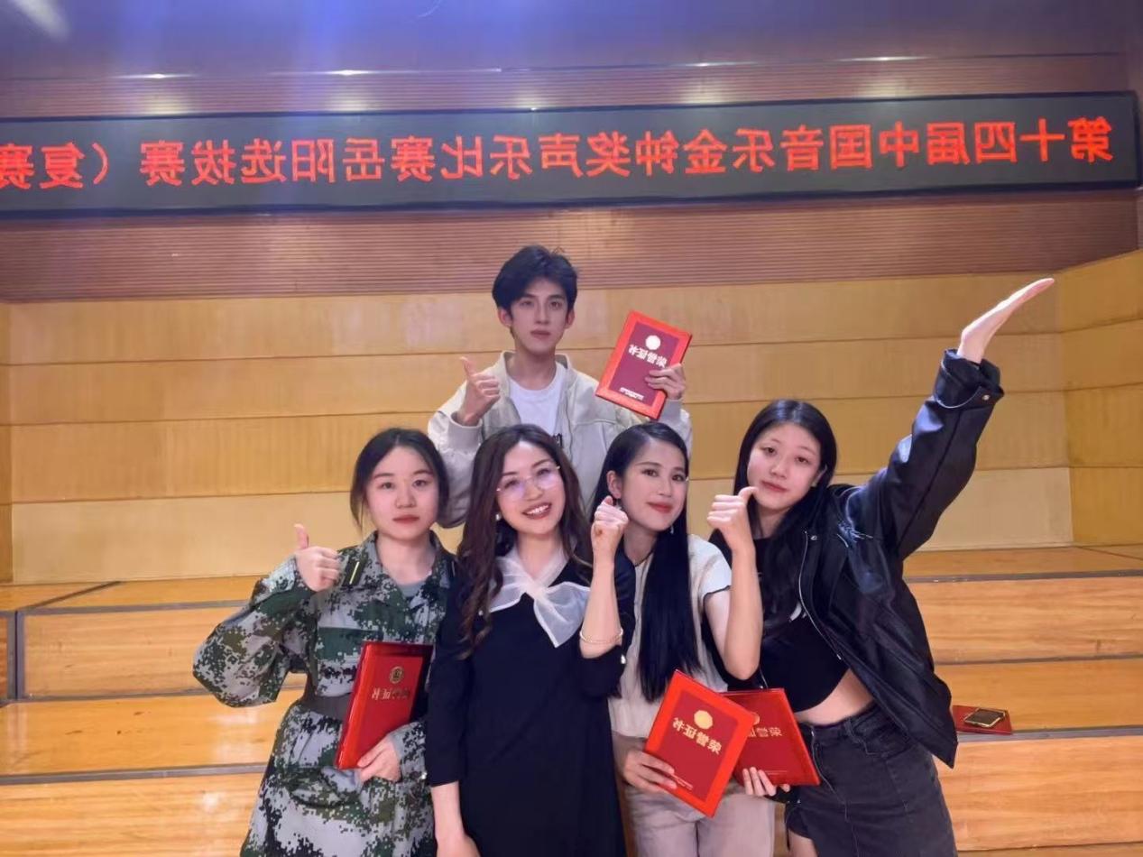 “严老师总是能一针见血的指出我的问题,并且针对我的问题进行调整。”麻润欣由衷的感慨,正是因为严珊老师的因材施教从未止步于理念宣讲,而是深耕细作于每一处教学实践细节。针对嗓音条件优异但情感表现力不足的学生,她量身设计情感表达专项训练,助力学生突破表演瓶颈;面对技巧扎实却缺乏舞台经验的学生,她积极搭建实践平台,创造大量演出实践机会。学生麻润欣便是这一教学理念的直接受益者——严老师发现其在民族唱法上的独特天赋后,迅速制定“一人一策”的个性化培养方案,从曲目筛选、发声技巧打磨,到舞台表现力提升、演出心理调节,进行全流程、全方位的精准指导。在这种“技能传授+素养培育”的双重培养模式下,麻润欣不仅连续两届蝉联省级声乐比赛一等奖,更顺利考取研究生继续深耕专业。而严老师连续两届获评“优秀指导教师”的荣誉,更印证了她以生为本、育技育德的教学实践成效,彰显了党员教师的育人初心与专业担当。